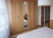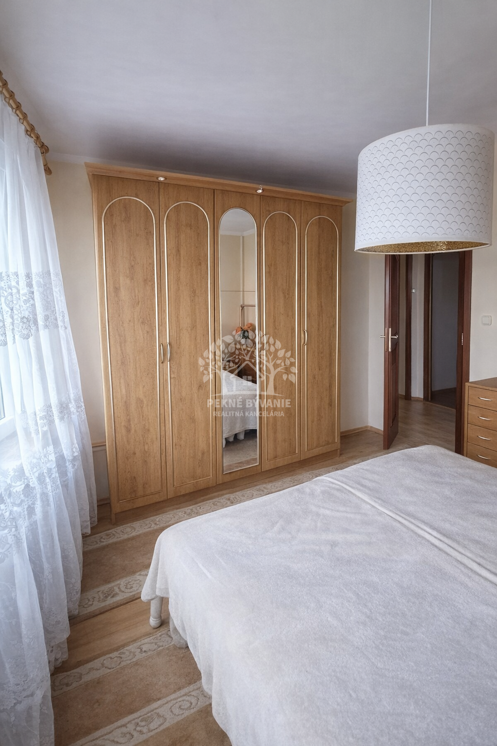 Spálňa je s plávajúcimi podlahami, plastovými oknami, žalúziami, stierkami, kúrením, el. rozvodmi, skriňou, komodou,