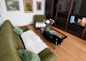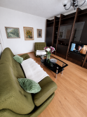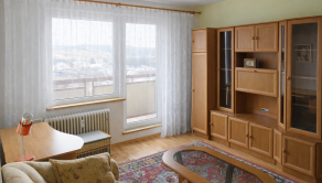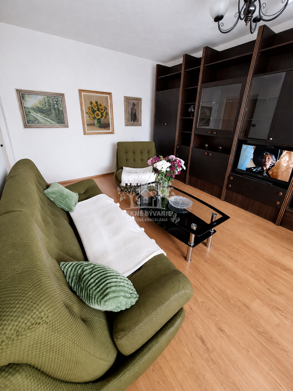 Obývacia izba je s plávajúcimi podlahami, plastovými oknami, žalúziami, stierkami, kúrením, el. rozvodmi, balkónom
