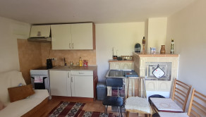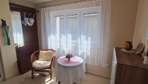 Dispozícia: vstupná chodba, kuchyňa spojená s obývačkou, spálňa so vstavanou skriňou, šatník - úložný priestor, kúpelňa so sprchovým kútom a toaletou, príprava v podkroví na ďalšie izby. Dom je čiastočne podpivničený, kam sa dostanete vonkajším schodiskom - možnosť uzatvoriť - okolo terasy do letnej kuchyne, kúpeľne so sprchovým kútom, toaletou a veľkou terasou pred domom.