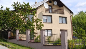 Ku rodinnému domu patrí dvojgaráž, ktorá je celá dvojpodlažná, z dvora je na prízemí dielňa a pivnice.