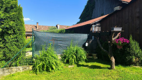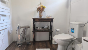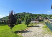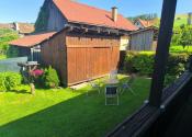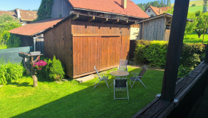 Na krásnom slnečnom rovinatom a oplotenom pozemku s výsadbou stromčekov, kvetín a kríkov sa nachádza drevená stavba - splachovacia toaleta, dreváreň a sklad či už na náradie, bicykle alebo lyže, využiteľné aj ako altánok, spevnená plocha na parkovanie a vonkajšie sedenie.