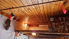 drevený obklad stropu + osvetlenie