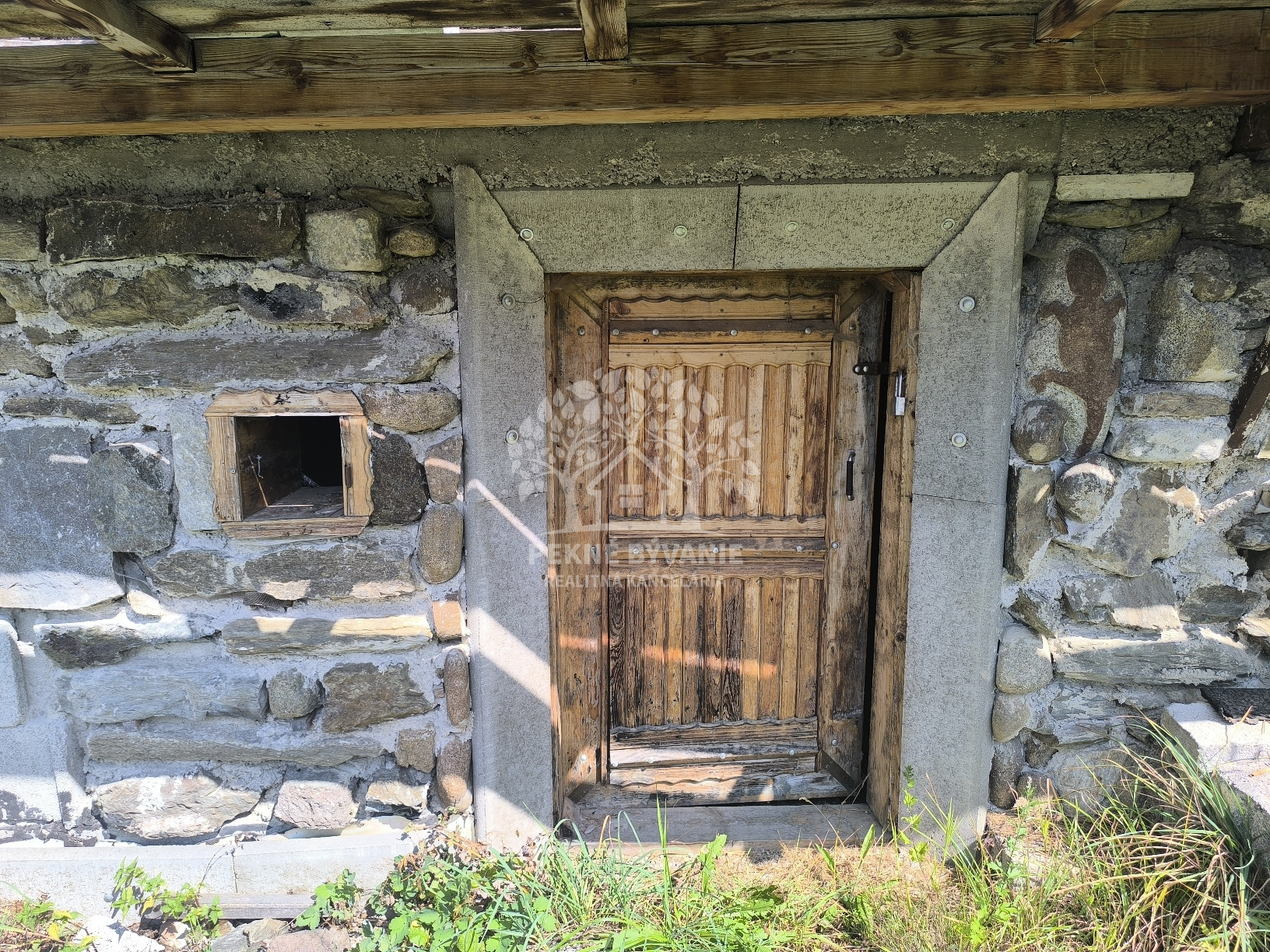 pivnica, vyvýšené prízemie vedie do drevenice - dvoch veľkorysých izieb s novým komínom, priestor na kúpeľňu, murovaná prístavba - dve izby, z toho jedna s novým komínom a veranda s veľkými oknami. Drevenicu a prístavbu je možné jednoduchým stavebným zásahom - výrezom prepojiť.