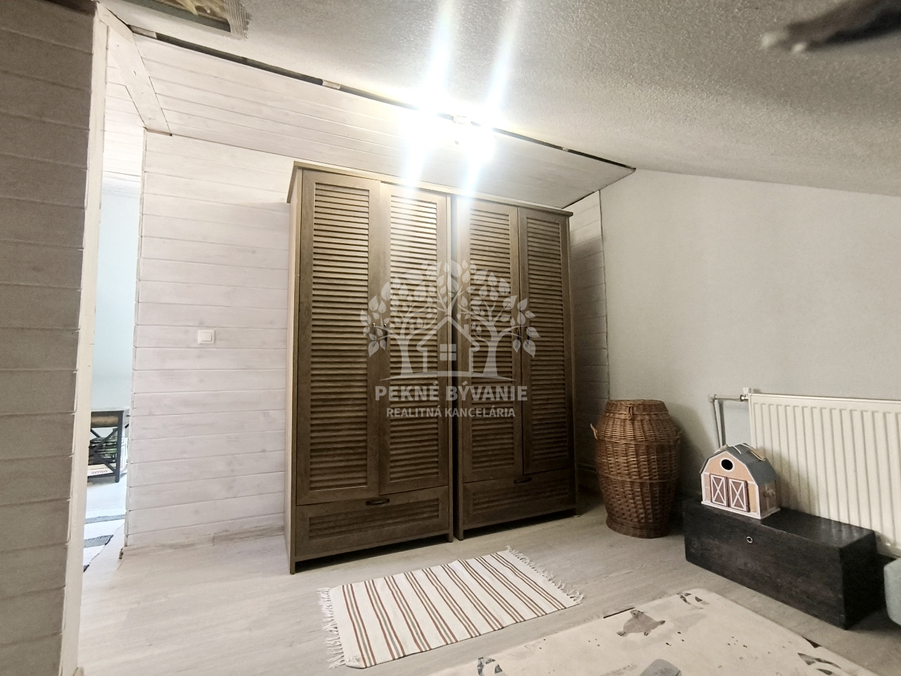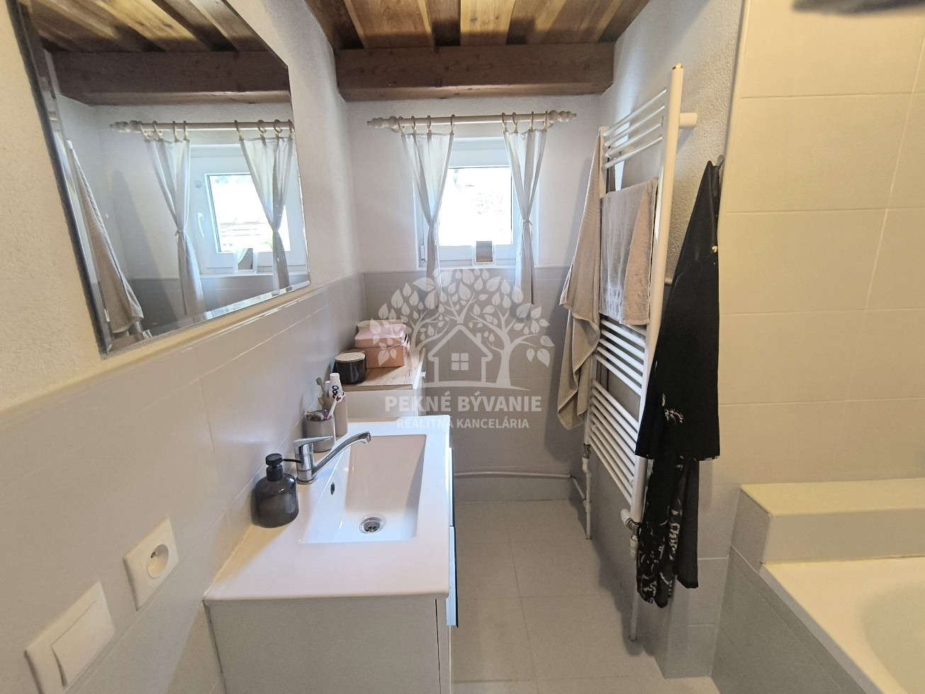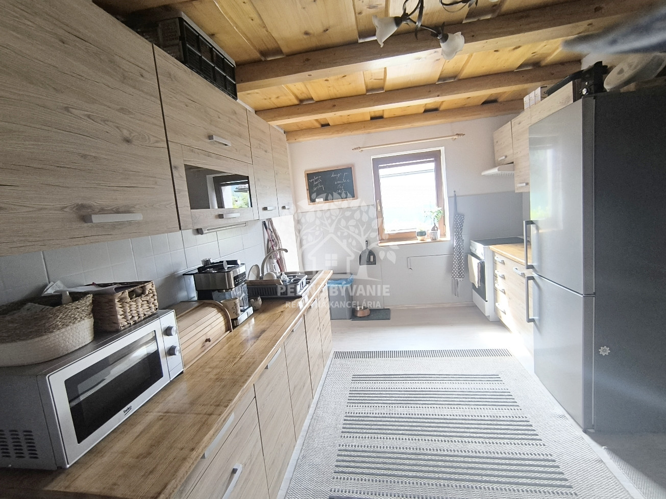 IBA U NÁS!! Licencovaná realitná maklérka Dáša Frgelcová, t.č. 0907/666 687 Vám exkluzívne ponúka na predaj krásny útulný rodinný dom po kompletnej kvalitnej nadčasovej rekonštrukcii, zariadený, v slepej bočnej ulici, 5 minút autom od Bystrej, na rovinatom pozemku o rozlohe 245 m2. Na pozemku sa nachádza dreváreň, záhradný domček, kde je jedna miestnosť - hosťovská s krbovými kachľami, sprchovým kútom a toaletou.