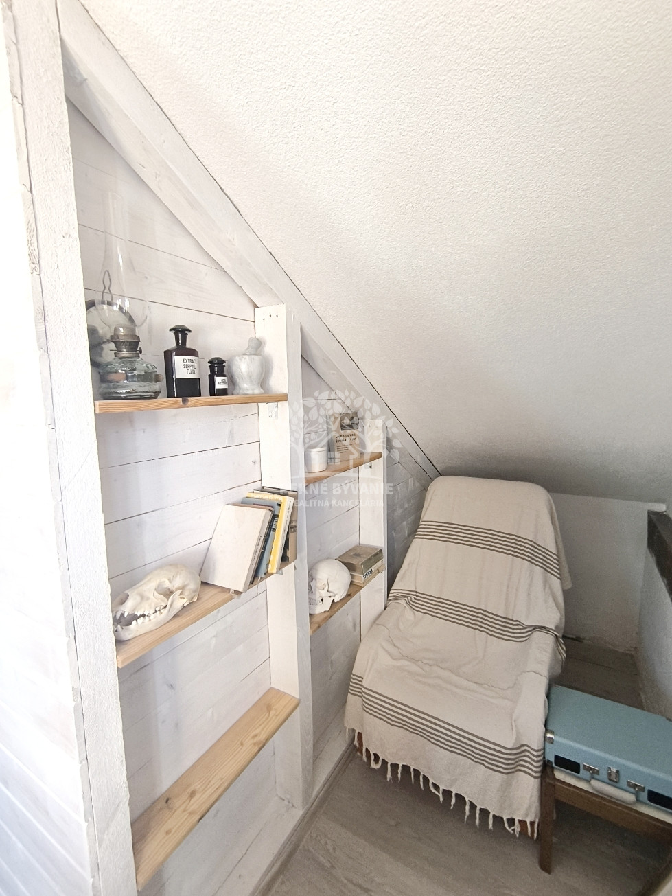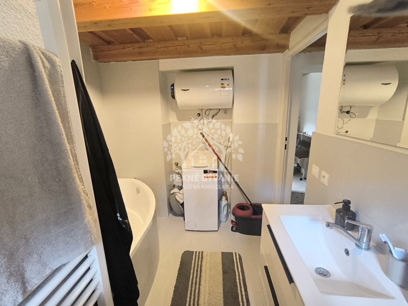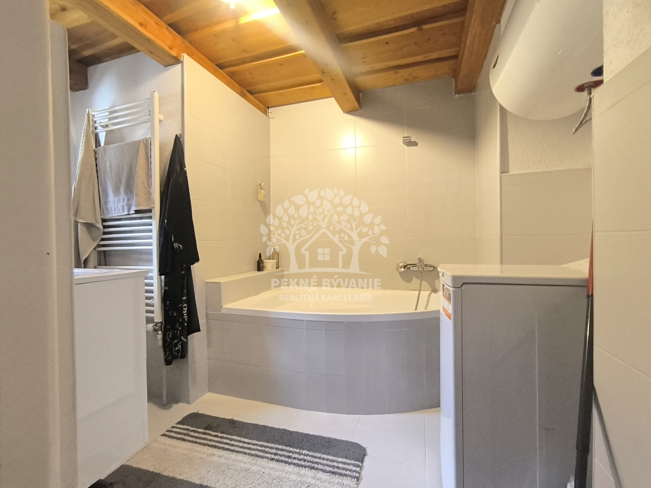 IBA U NÁS!! Licencovaná realitná maklérka Dáša Frgelcová, t.č. 0907/666 687 Vám exkluzívne ponúka na predaj krásny útulný rodinný dom po kompletnej kvalitnej nadčasovej rekonštrukcii, zariadený, v slepej bočnej ulici, 5 minút autom od Bystrej, na rovinatom pozemku o rozlohe 245 m2. Na pozemku sa nachádza dreváreň, záhradný domček, kde je jedna miestnosť - hosťovská s krbovými kachľami, sprchovým kútom a toaletou.