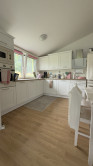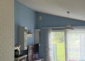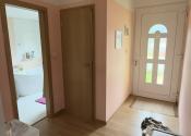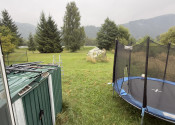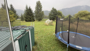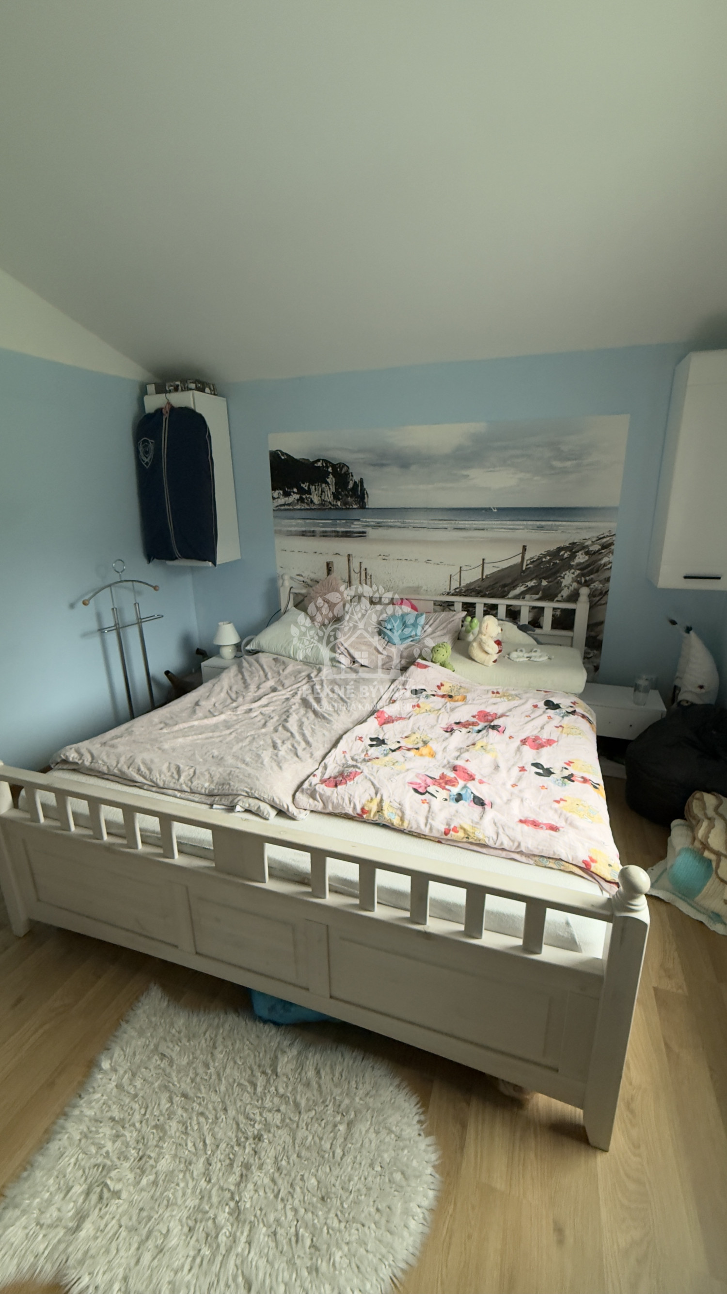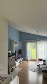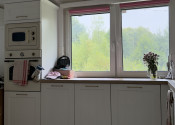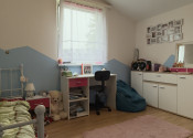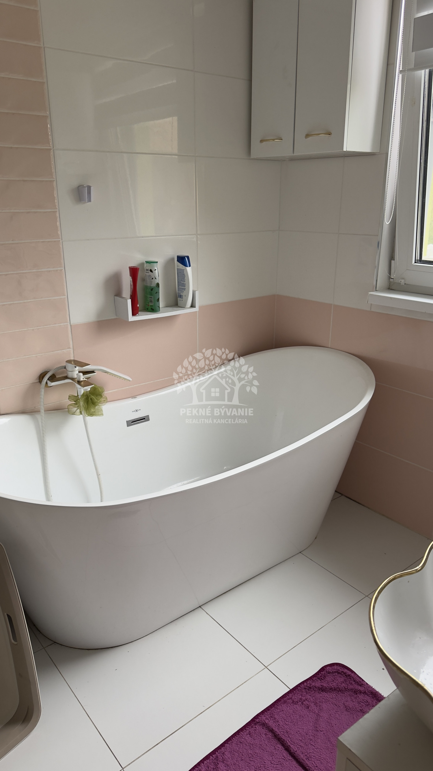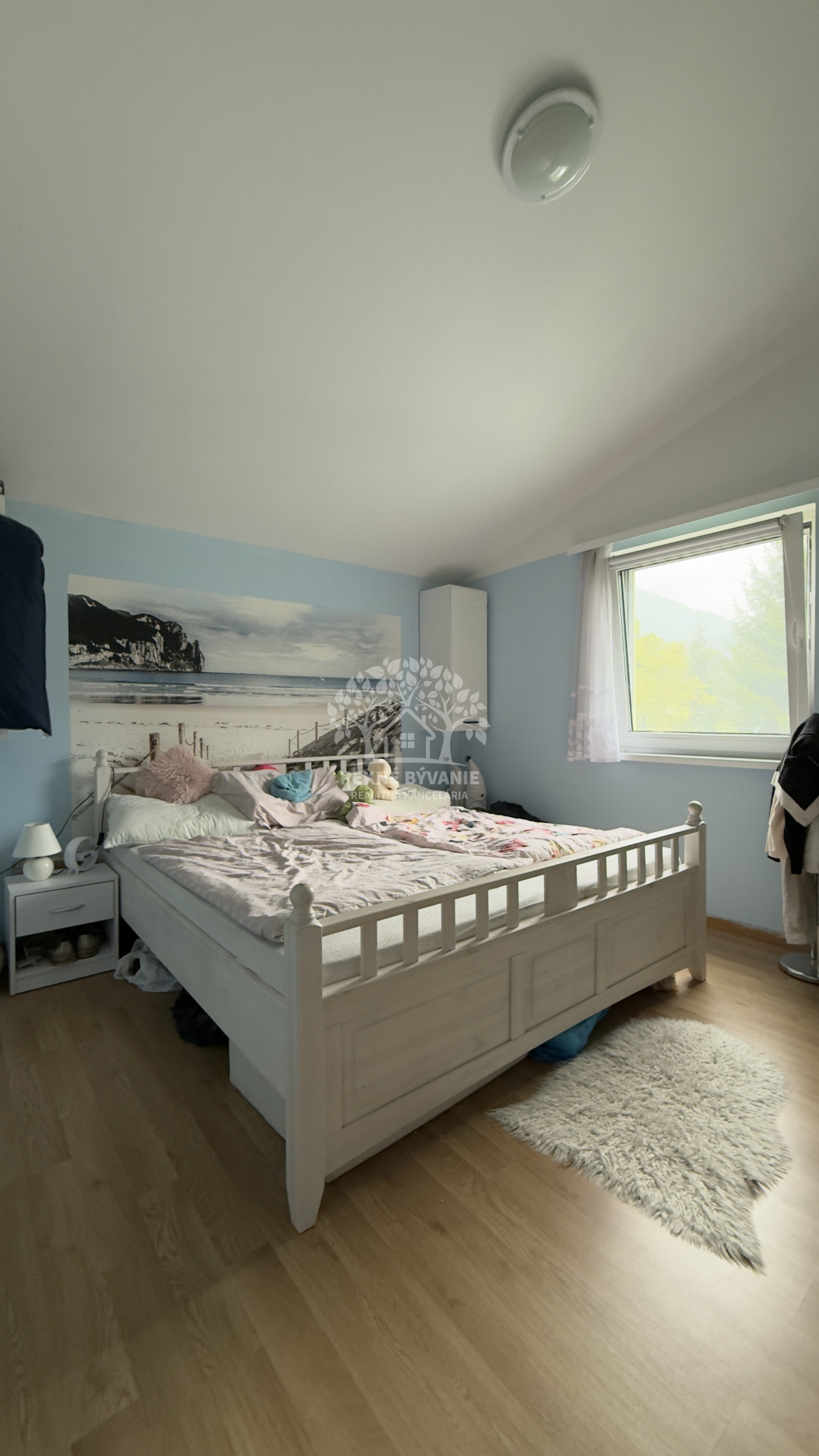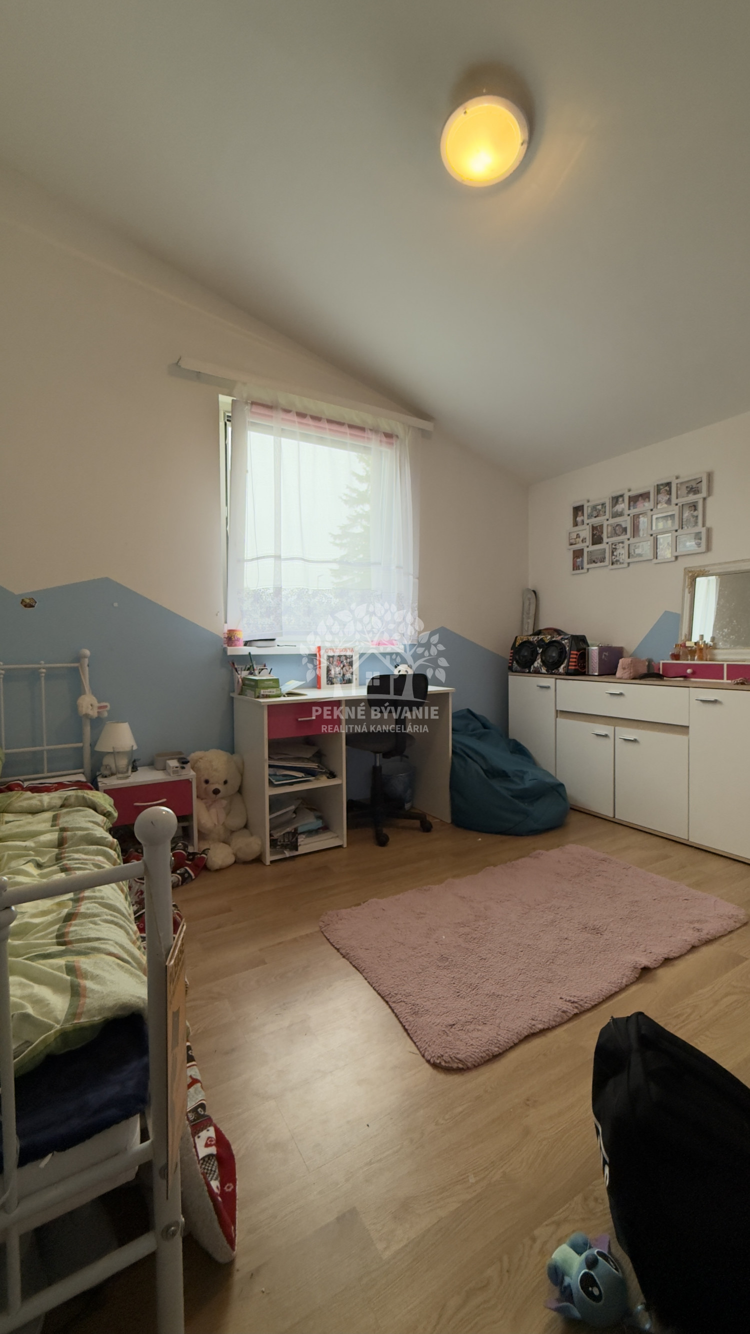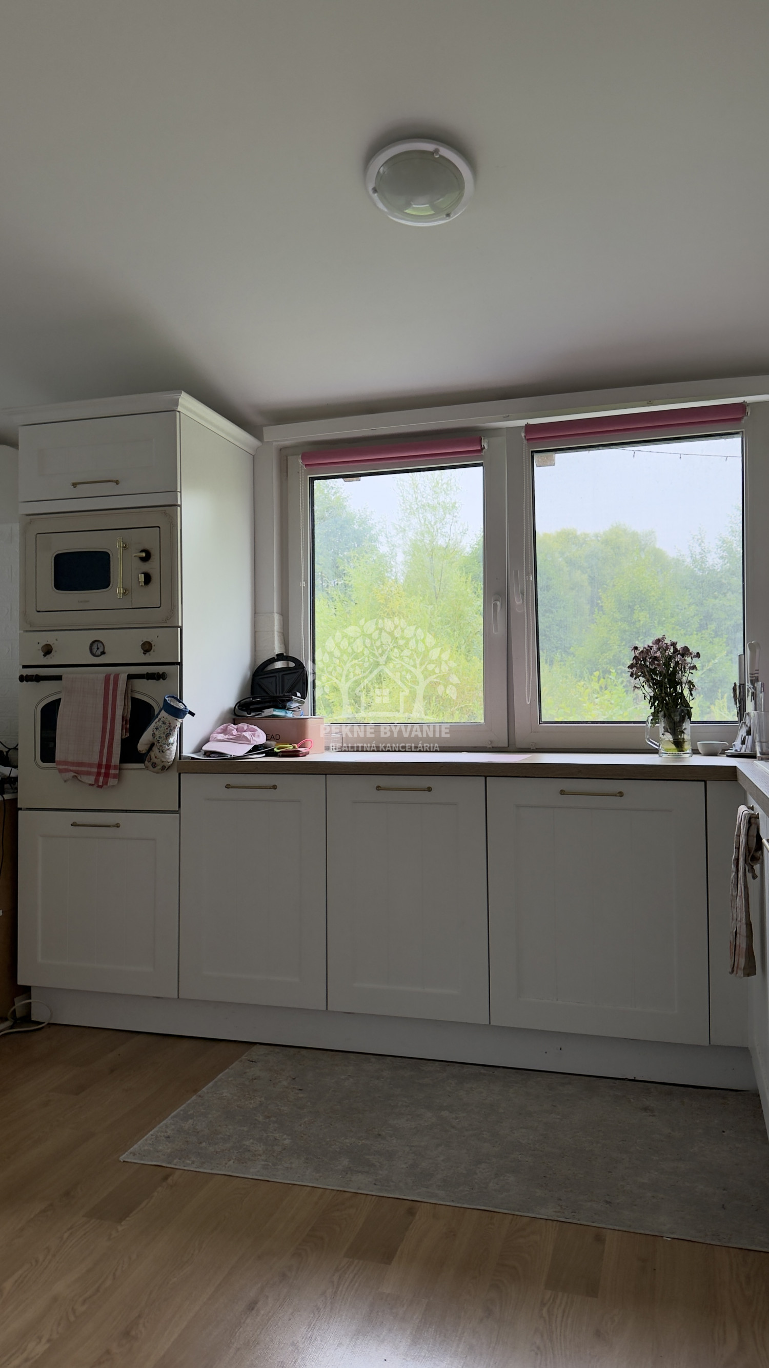 DISPOZÍCIA: chodba, samostatná toaleta, kúpeľňa so sprchovým kútom aj vaňou, kuchyňa s kuchynskou linkou na mieru spojená s obývacou miestnosťou s krbovými kachľami, 2 detské izby, spálňa.