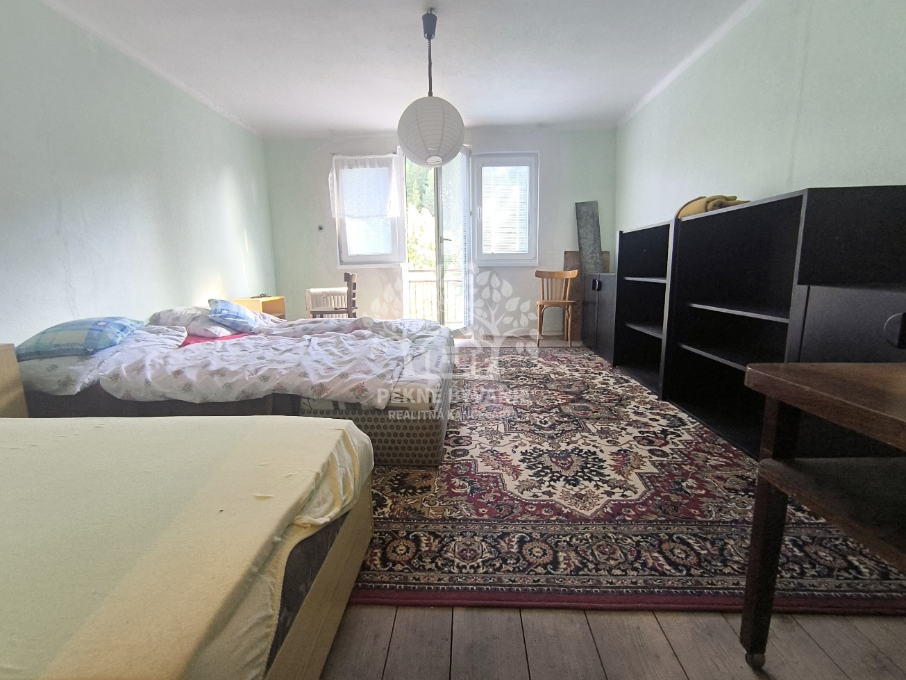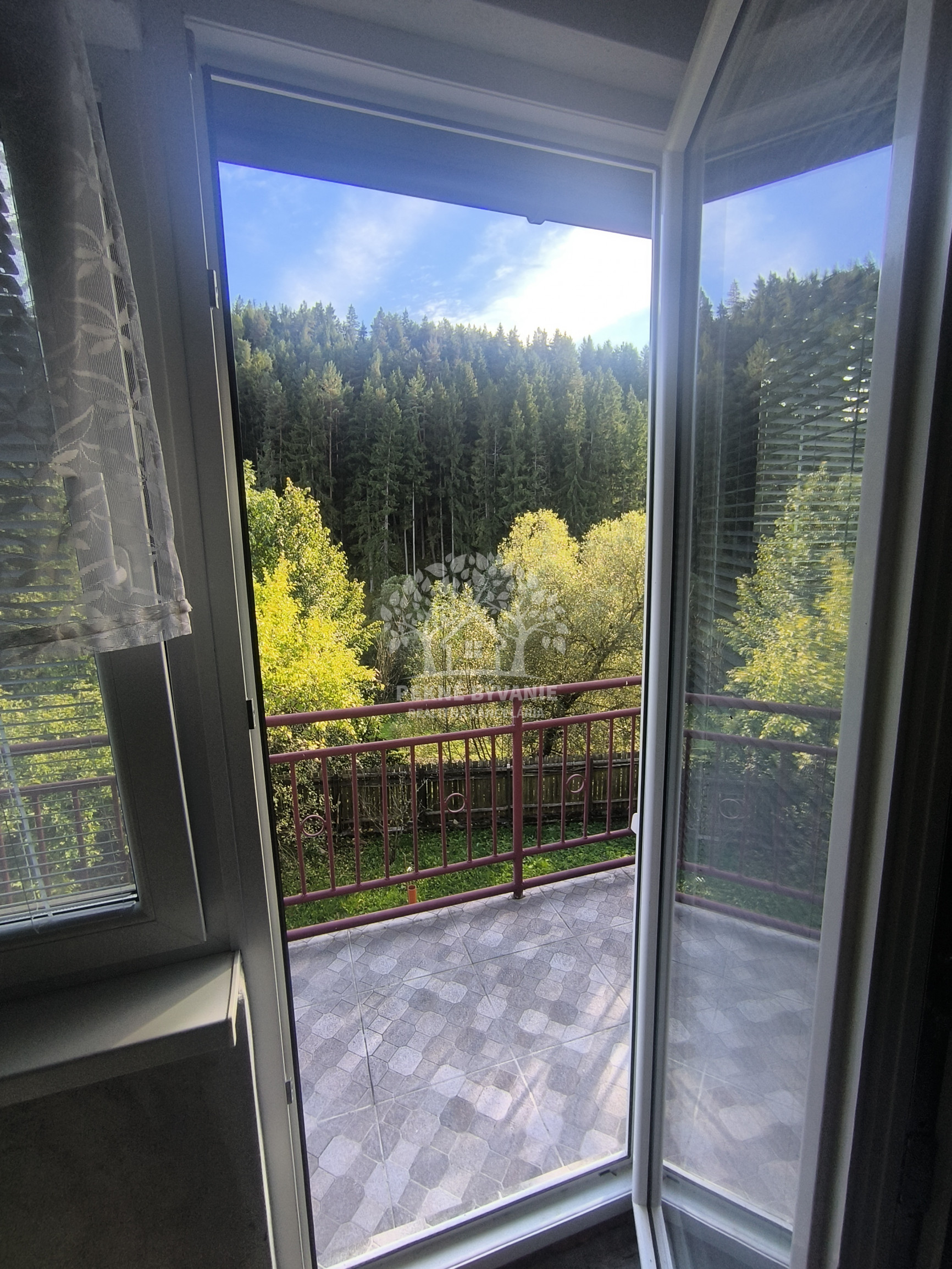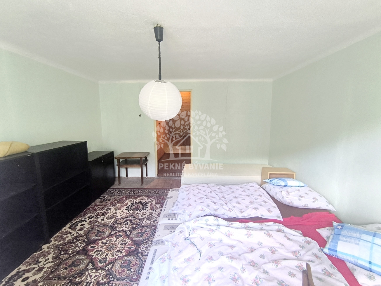 1.poschodie: osobitný vchod - vstupná chodba, kuchyňa s murovaným šporákom, obývačka, dve izby, kúpeľňa s vaňou, toaletou a krásnym dobovým zachovalým bojlerom na drevo, schody do podkrovia, kde je balkón s krásnym výhľadom na les.