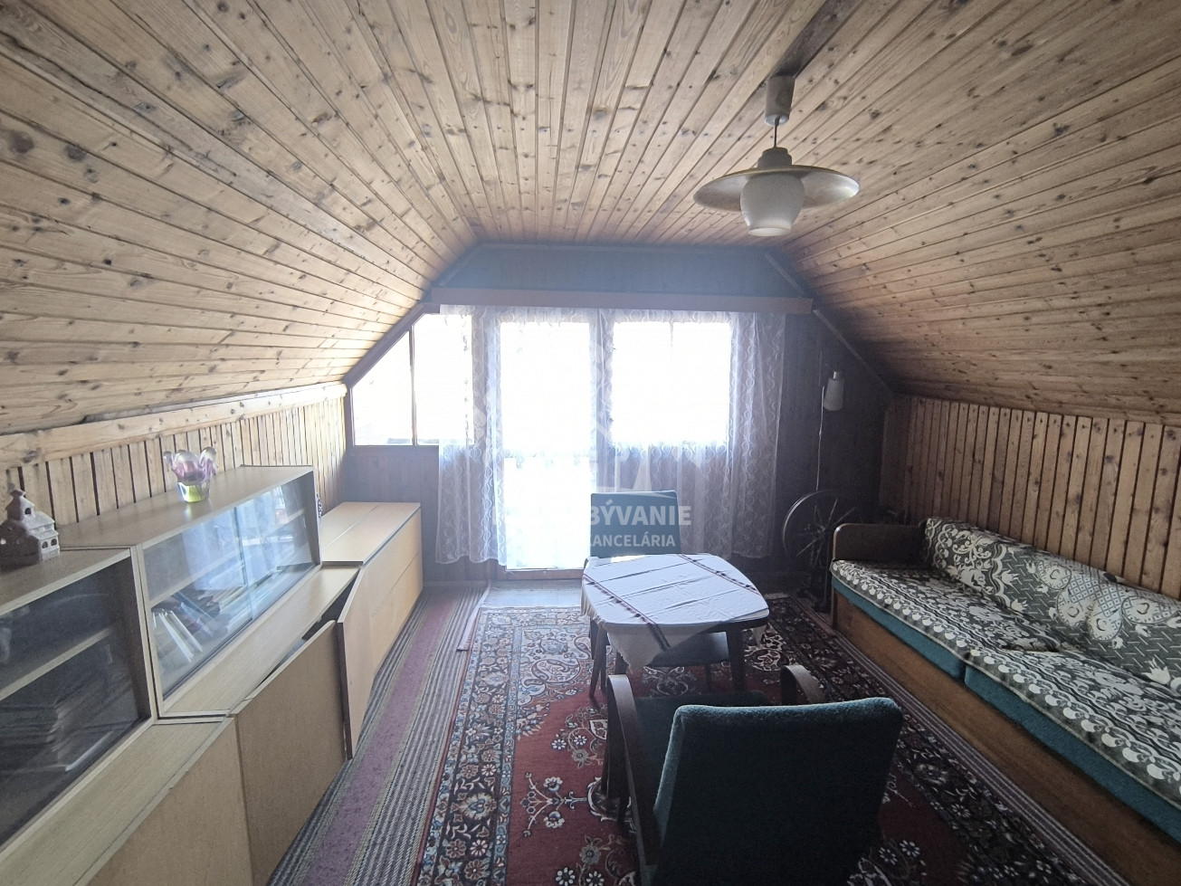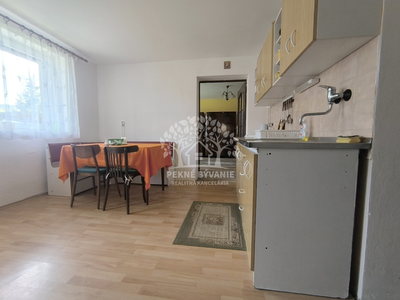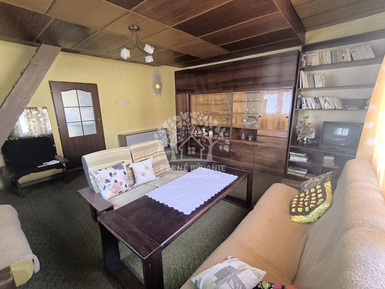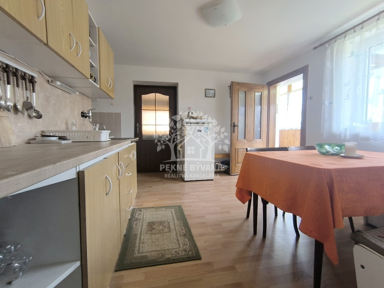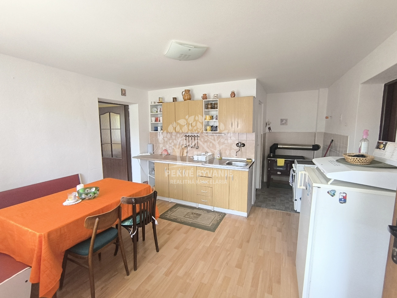 Dispozícia: vstupná chodba - veranda, kuchyňa so zánovným šporákom na drevo, špajza, obývačka so schodami do podkrovia, kde je izba s lódžiou, spálňa s krásnou zachovalou funkčnou kachľovou pecou, kúpeľňa s vaňou, sprchovým kútom a toaletou. Nehnuteľnosť má osobitný vchod do chodbičky s vchodom do priestrannej izby - hosťovskej, z ktorej je možné sa dostať do prednej časti domu.