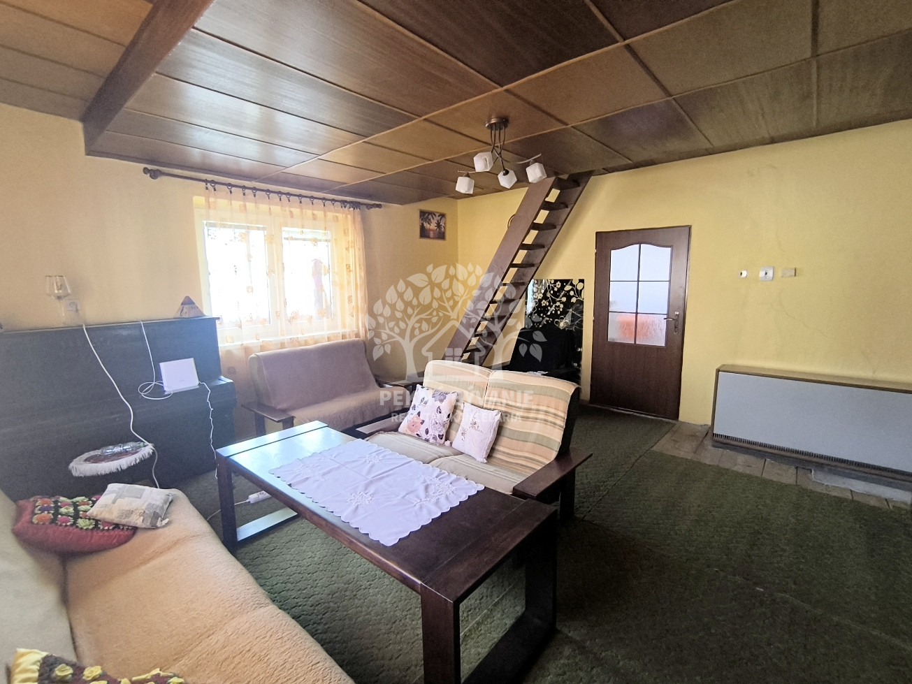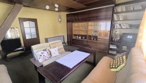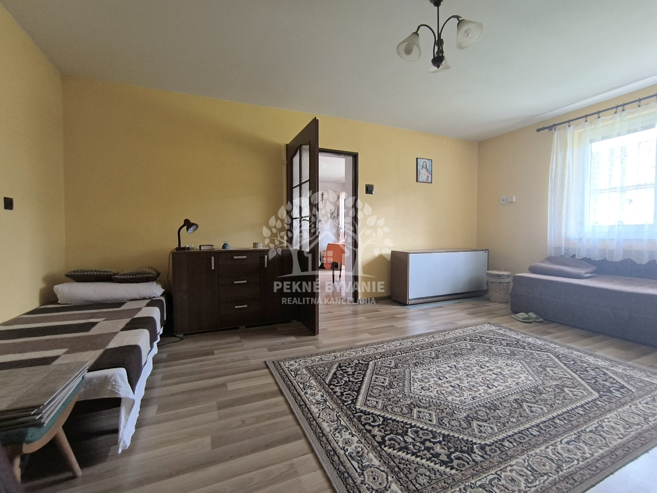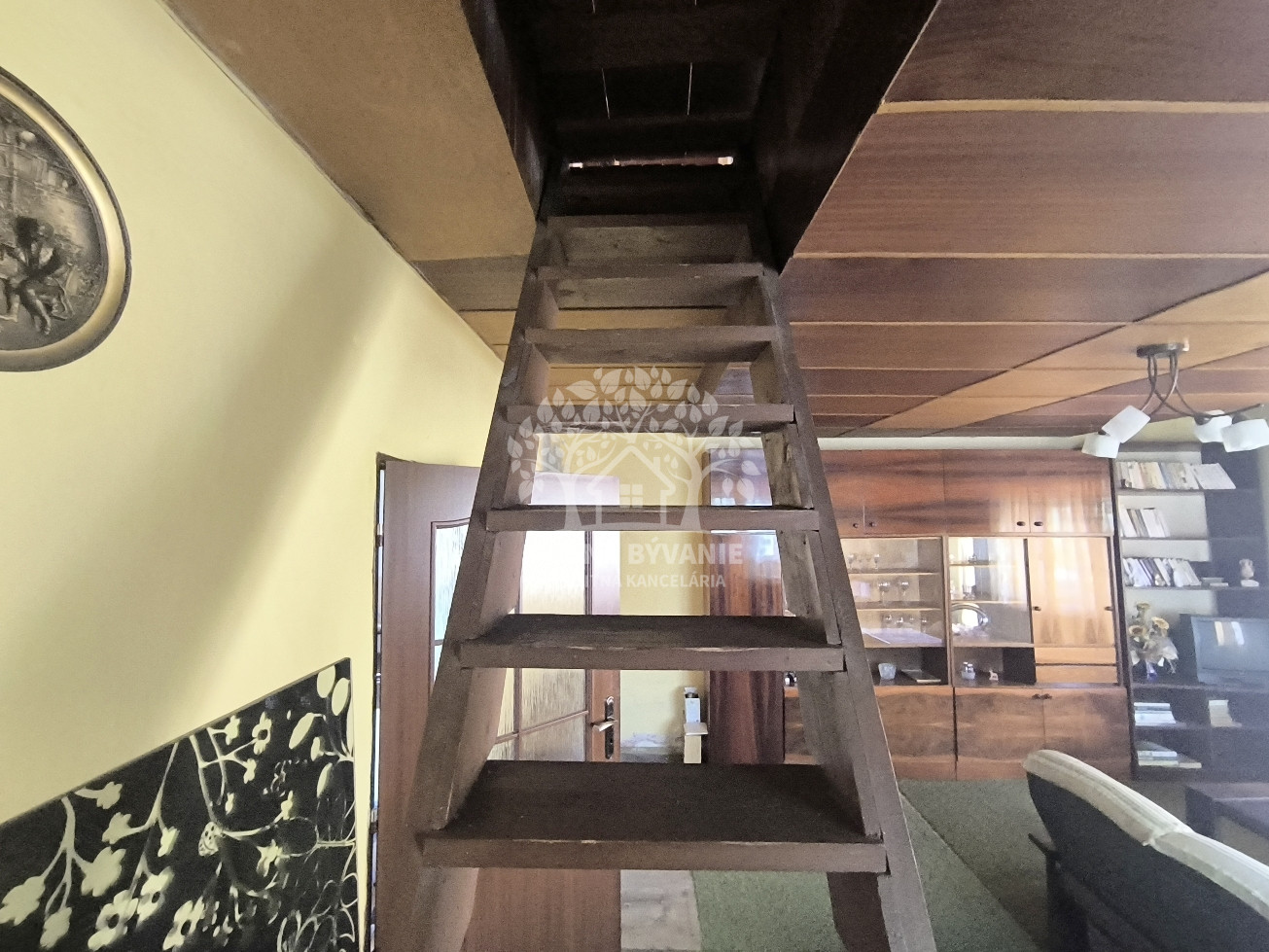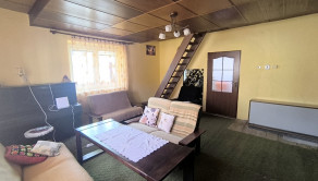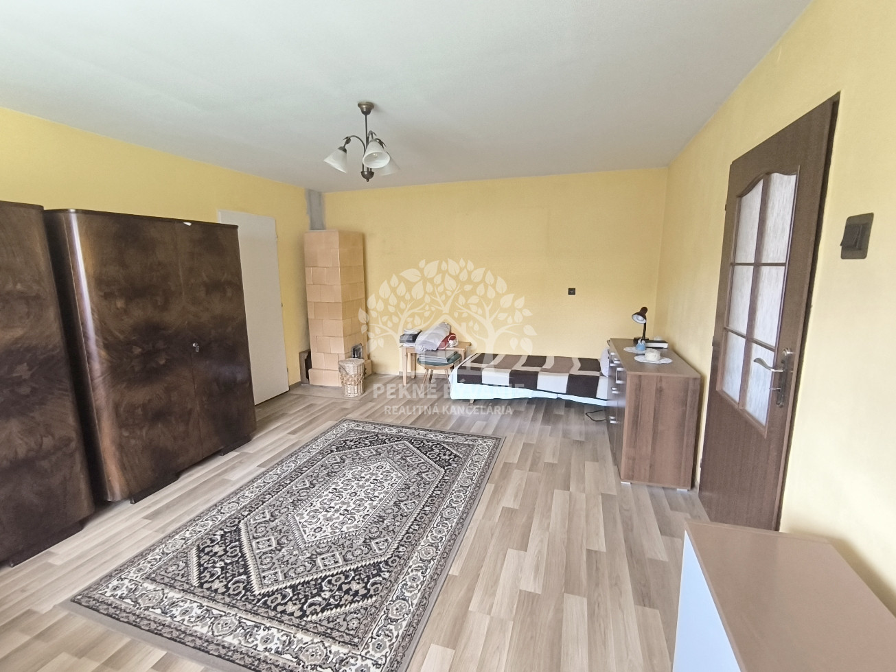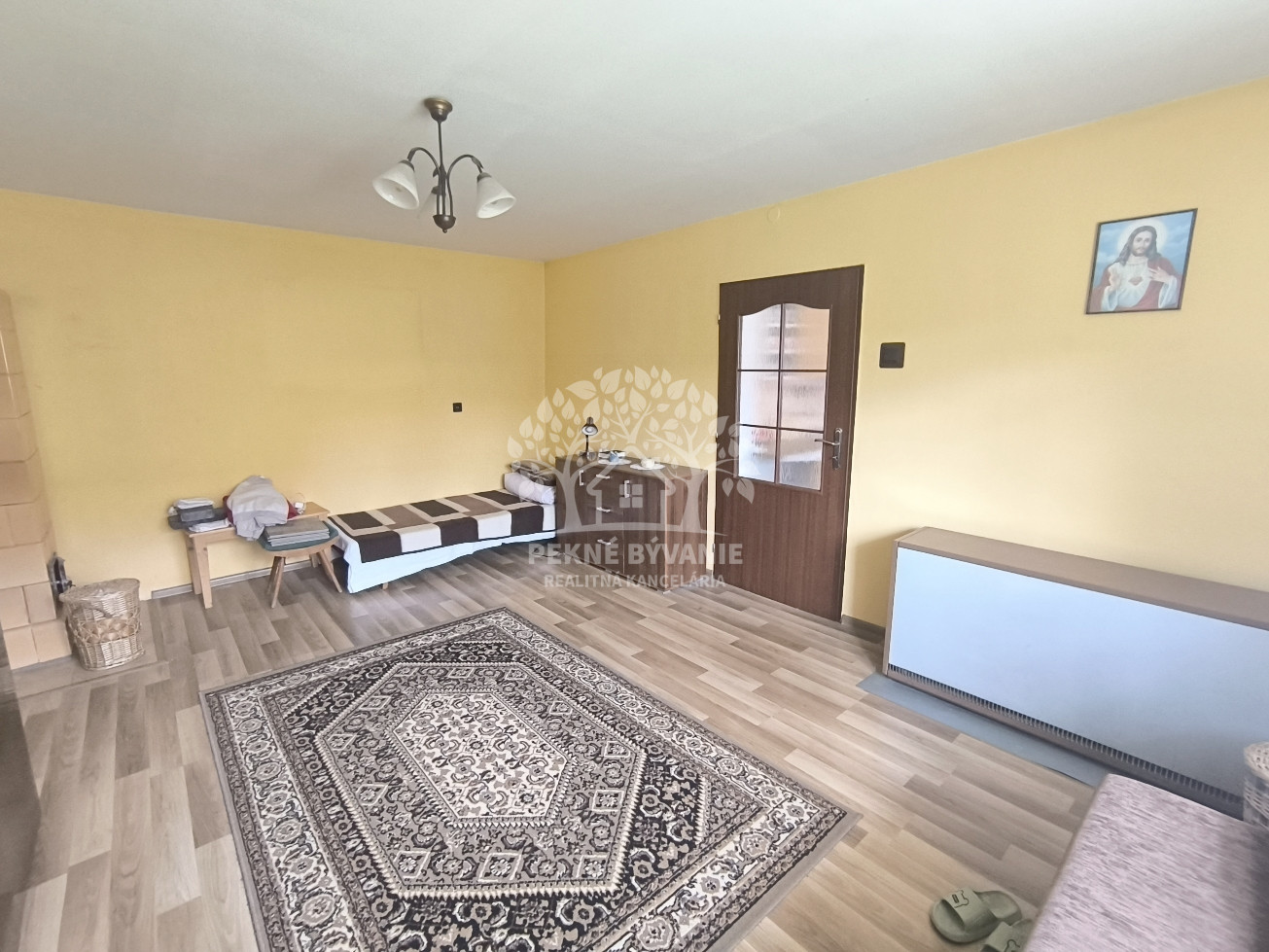 Dispozícia: vstupná chodba - veranda, kuchyňa so zánovným šporákom na drevo, špajza, obývačka so schodami do podkrovia, kde je izba s lódžiou, spálňa s krásnou zachovalou funkčnou kachľovou pecou, kúpeľňa s vaňou, sprchovým kútom a toaletou. Nehnuteľnosť má osobitný vchod do chodbičky s vchodom do priestrannej izby - hosťovskej, z ktorej je možné sa dostať do prednej časti domu.
