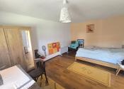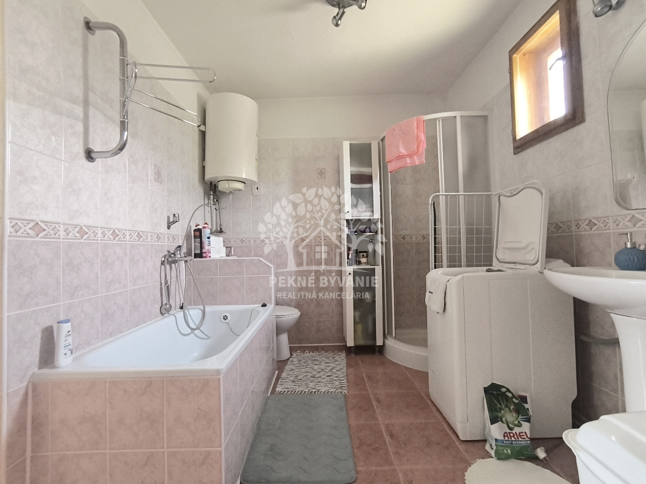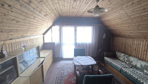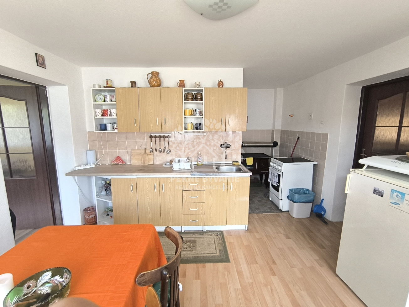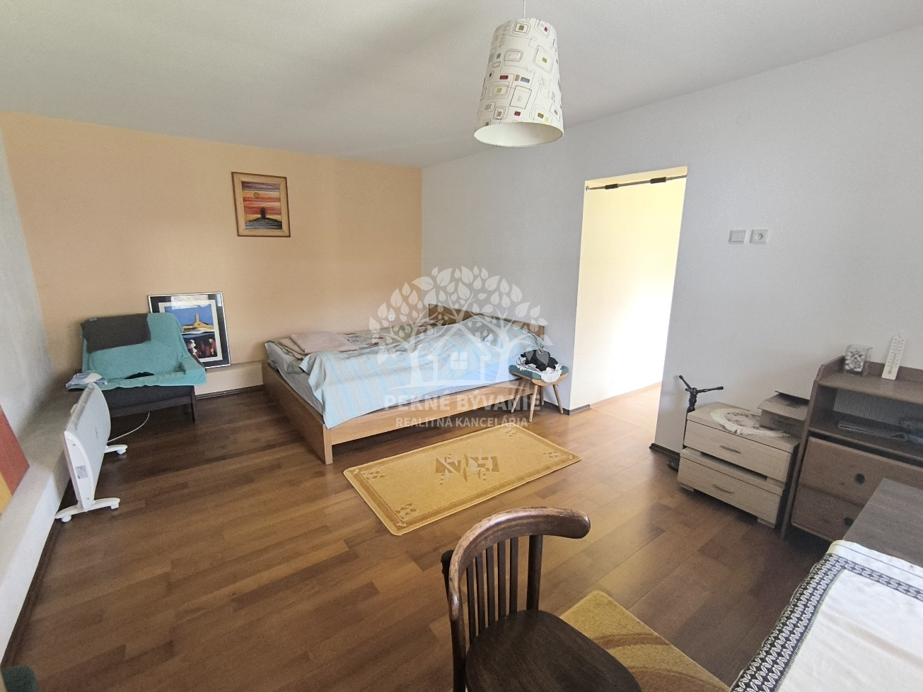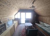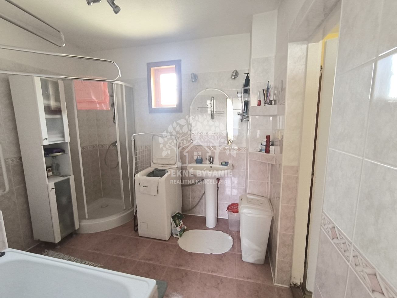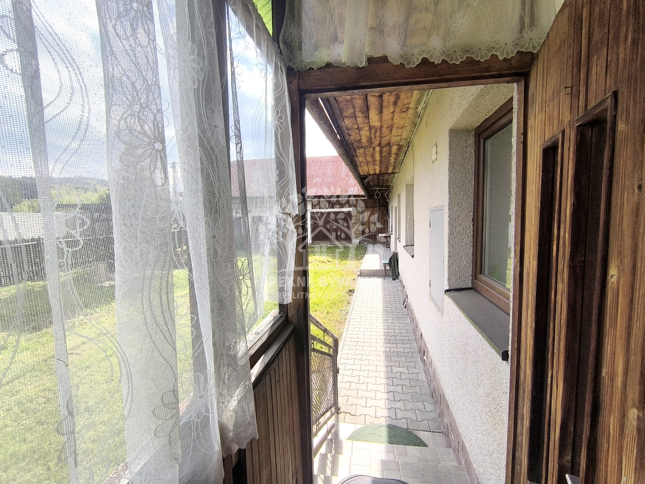 Dispozícia: vstupná chodba - veranda, kuchyňa so zánovným šporákom na drevo, špajza, obývačka so schodami do podkrovia, kde je izba s lódžiou, spálňa s krásnou zachovalou funkčnou kachľovou pecou, kúpeľňa s vaňou, sprchovým kútom a toaletou. Nehnuteľnosť má osobitný vchod do chodbičky s vchodom do priestrannej izby - hosťovskej, z ktorej je možné sa dostať do prednej časti domu.