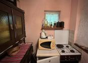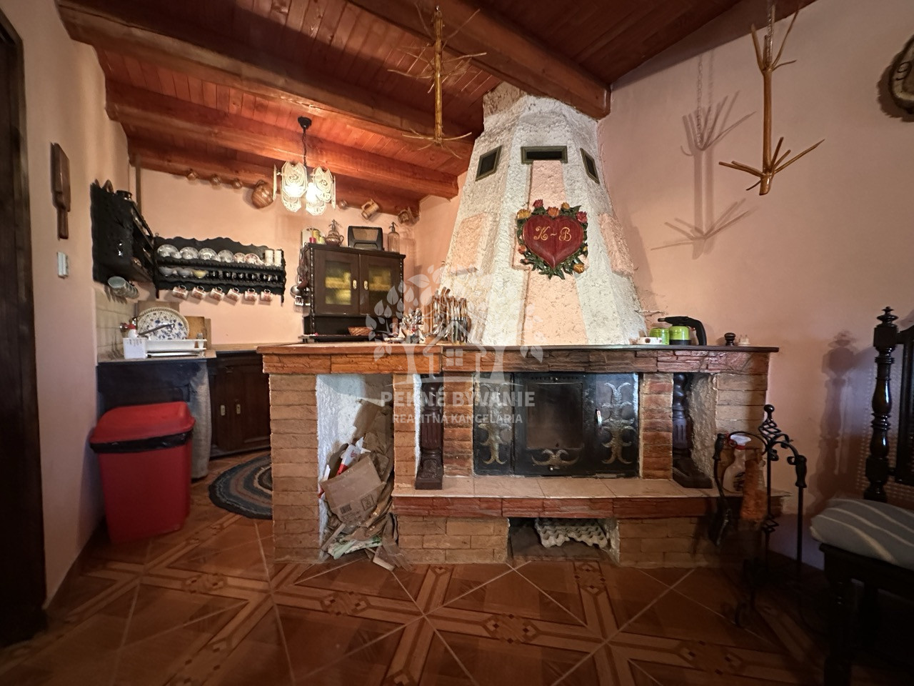 Kuchyňa: keramická dlažba, omietky, okno, osvetlenie, lokálne kúrenie, kuchynské zariadenie, plynový sporák s el. rúrou