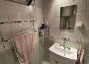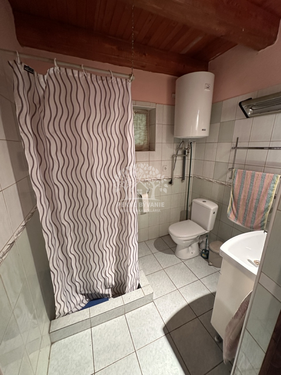 1. WC + sprchovací kút, dlažba, obklad, osvetlenie, umývadlo, skrinka, okno