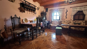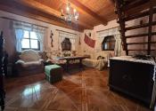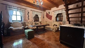 1. izba: drevená podlaha, omietky, tatranský obklad, okno, osvetlenie