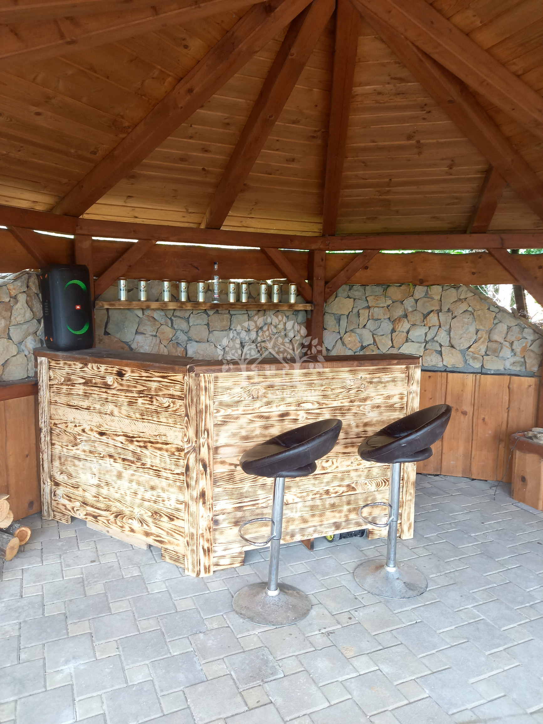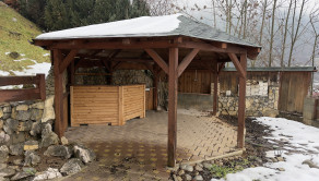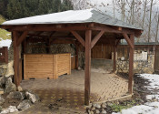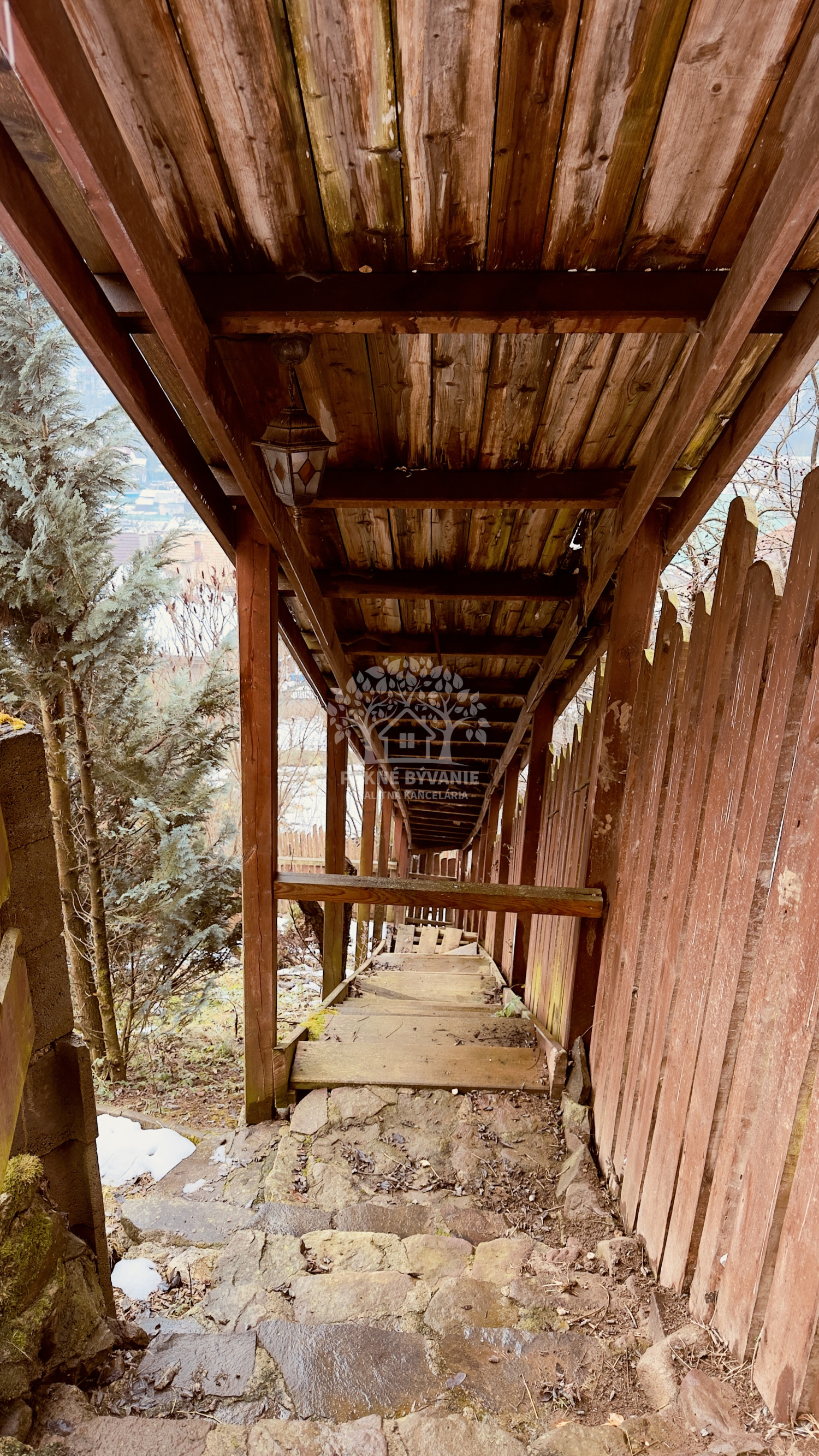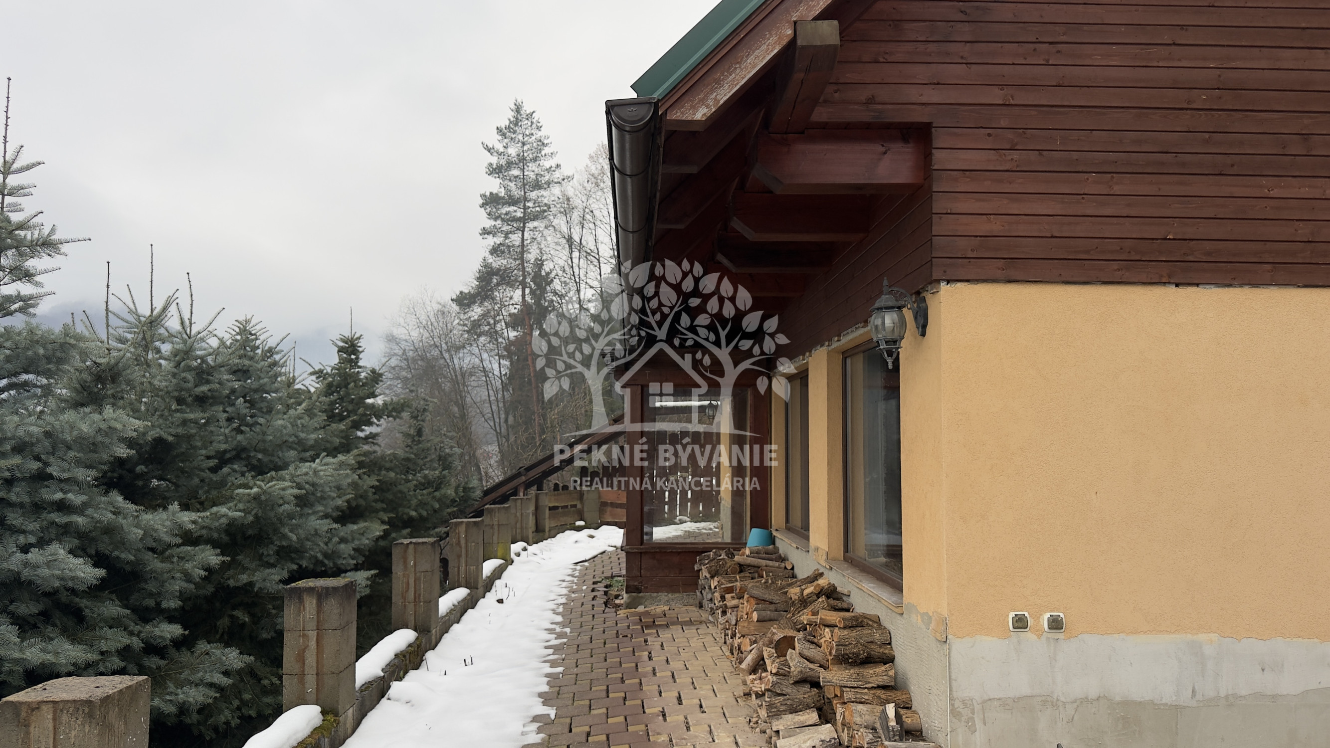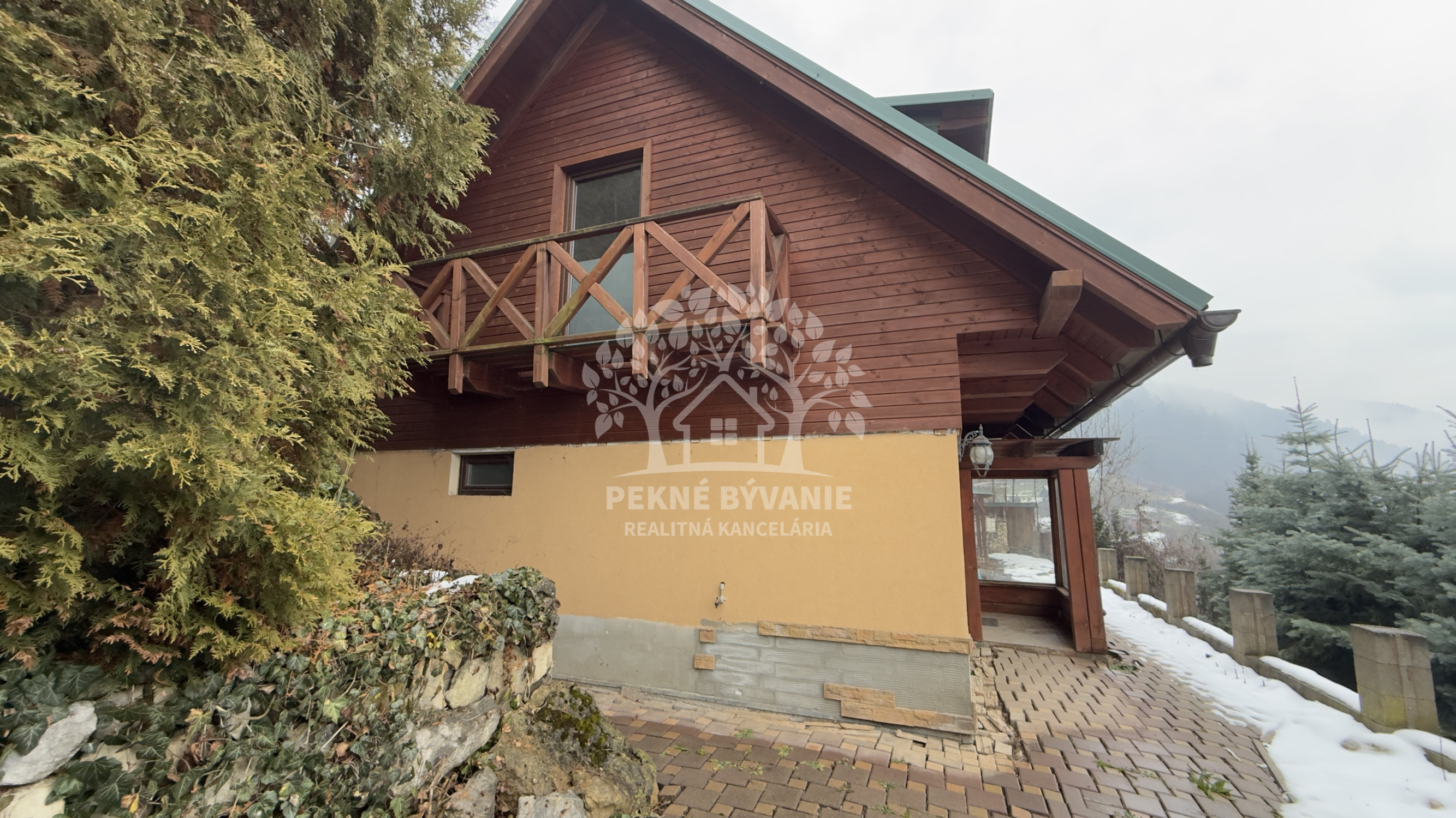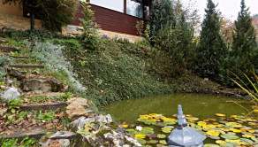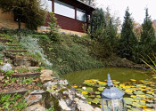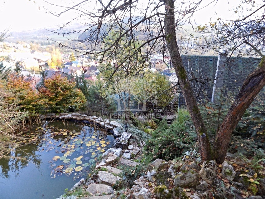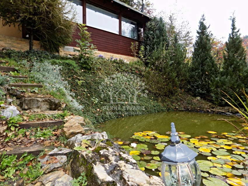 Nehnuteľnosť sa nachádza na kopci na kaskádovitom, slnečnom pozemku s jazierkom, altánkom a hosťovskou chalúpkou.