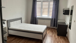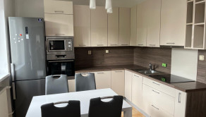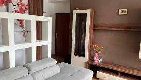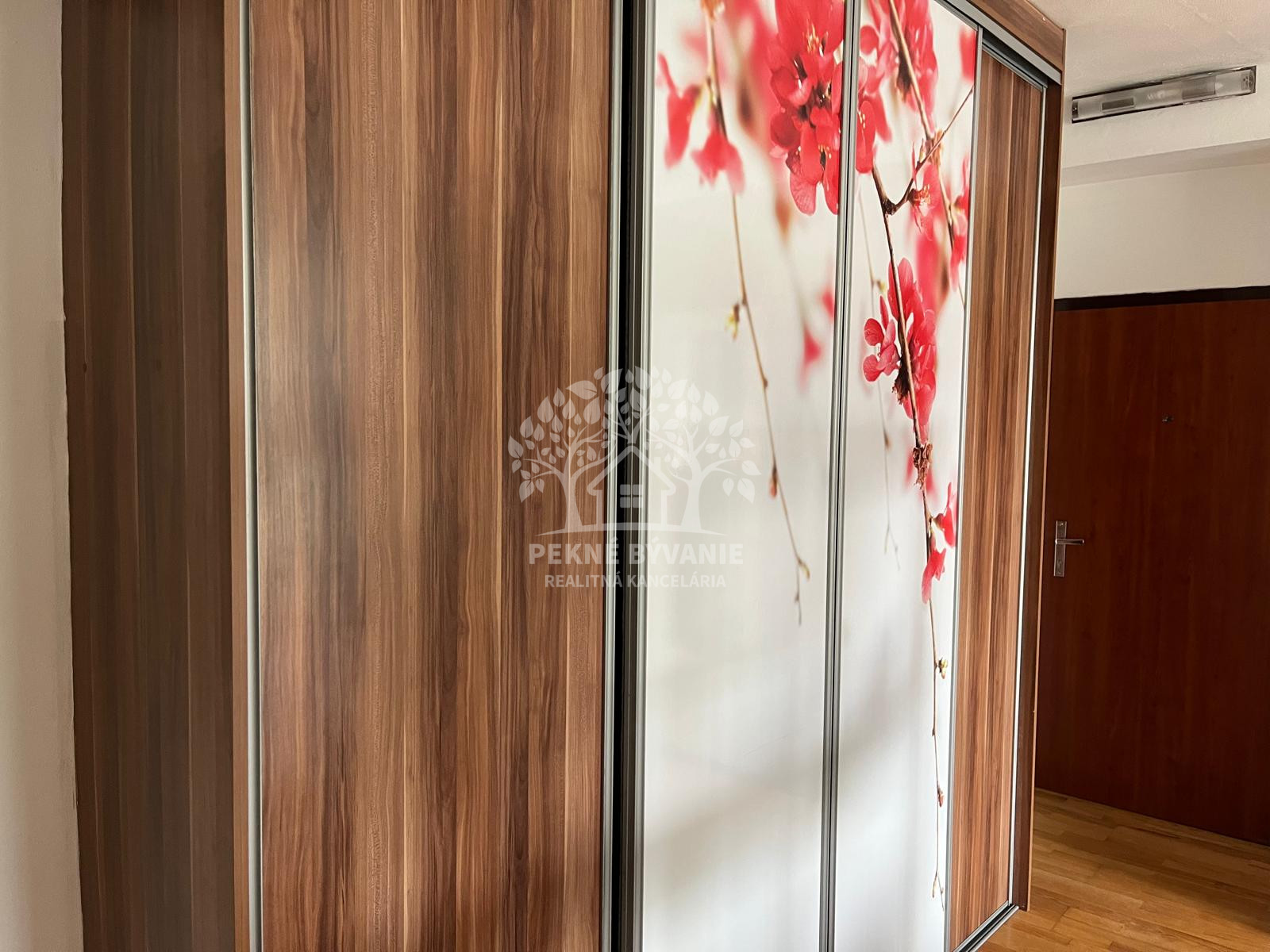 byt pozostáva zo zádveria, chodby esteticky prepojenej s obývaciu izbou murovanou osvetlenou zástenou, v chodbe sa nachádza aj veľká vstavaná skriňa. Veľká obývacia izba orientovaná na západ z ktorej sa vystupuje na balkón je prepojená s kuchyňou. V kuchyni je plne vybavená kuchynská linka s indukčnou varnou doskou, odsávačom pár, elektrickou rúrou, mikrovlnnou rúrou, chladničkou s mrazničkou a umývačkou riadu. Je tu vkusne umiestnený aj jedálenský stôl. Druhá izba je využívaná ako spálňa s tým, že vďaka svojej veľkosti je možné ju rozdeliť na dve menšie izby, prípadne si tu urobiť šatník alebo pracovňu.