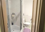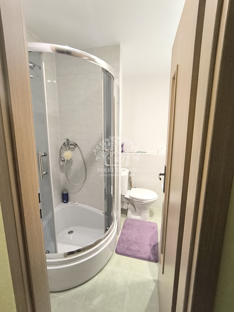 Dispozícia: vstupná chodba, kúpeľňa so sprchovým kútom a toaletou, kuchyňa, izba.