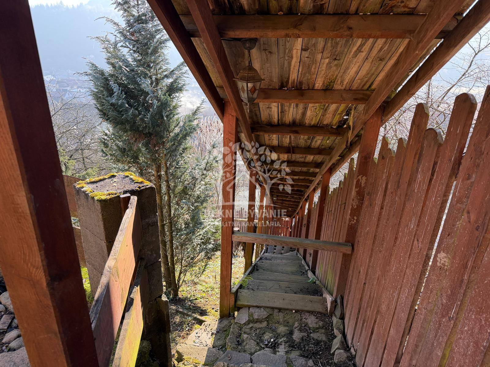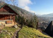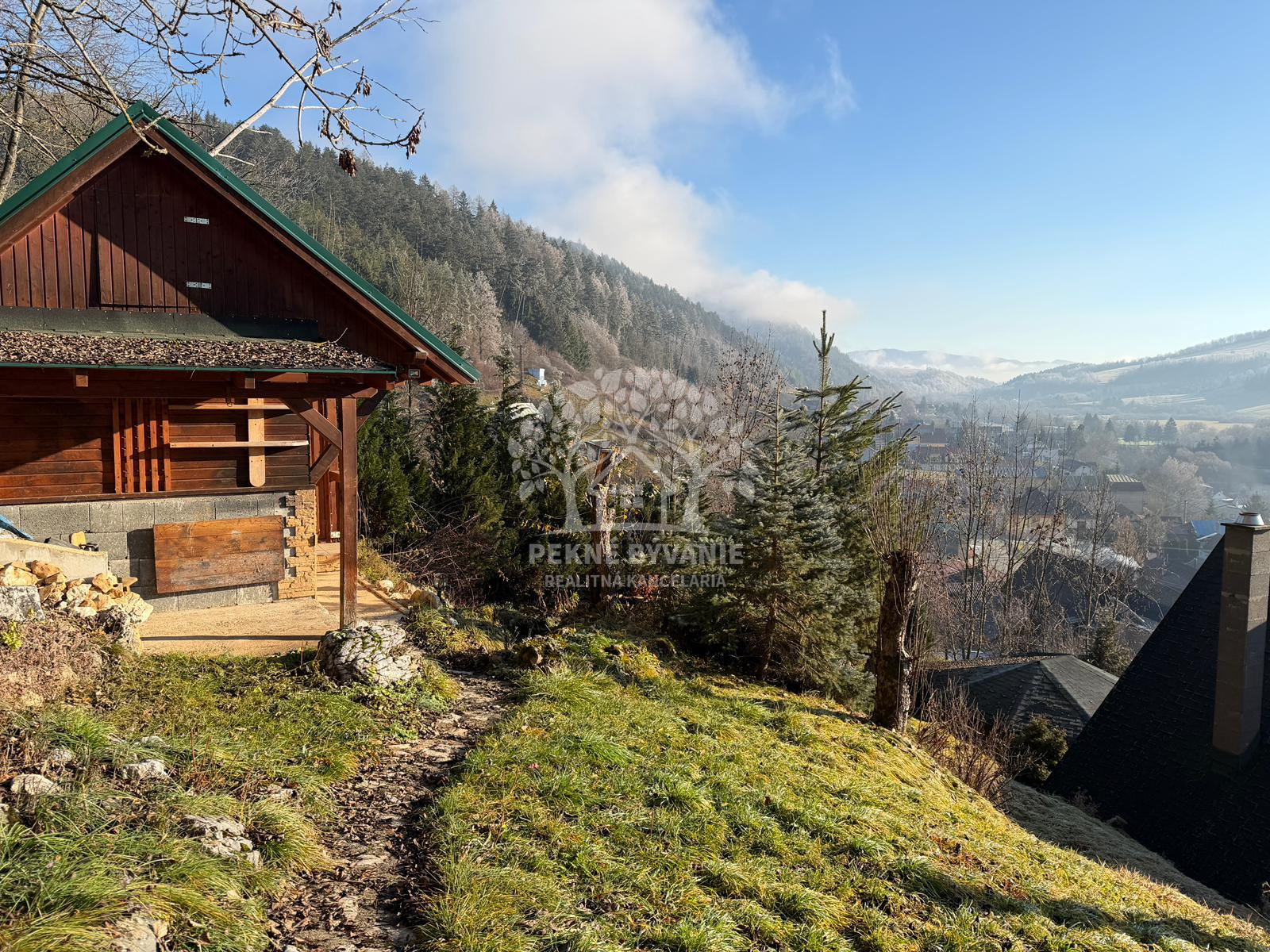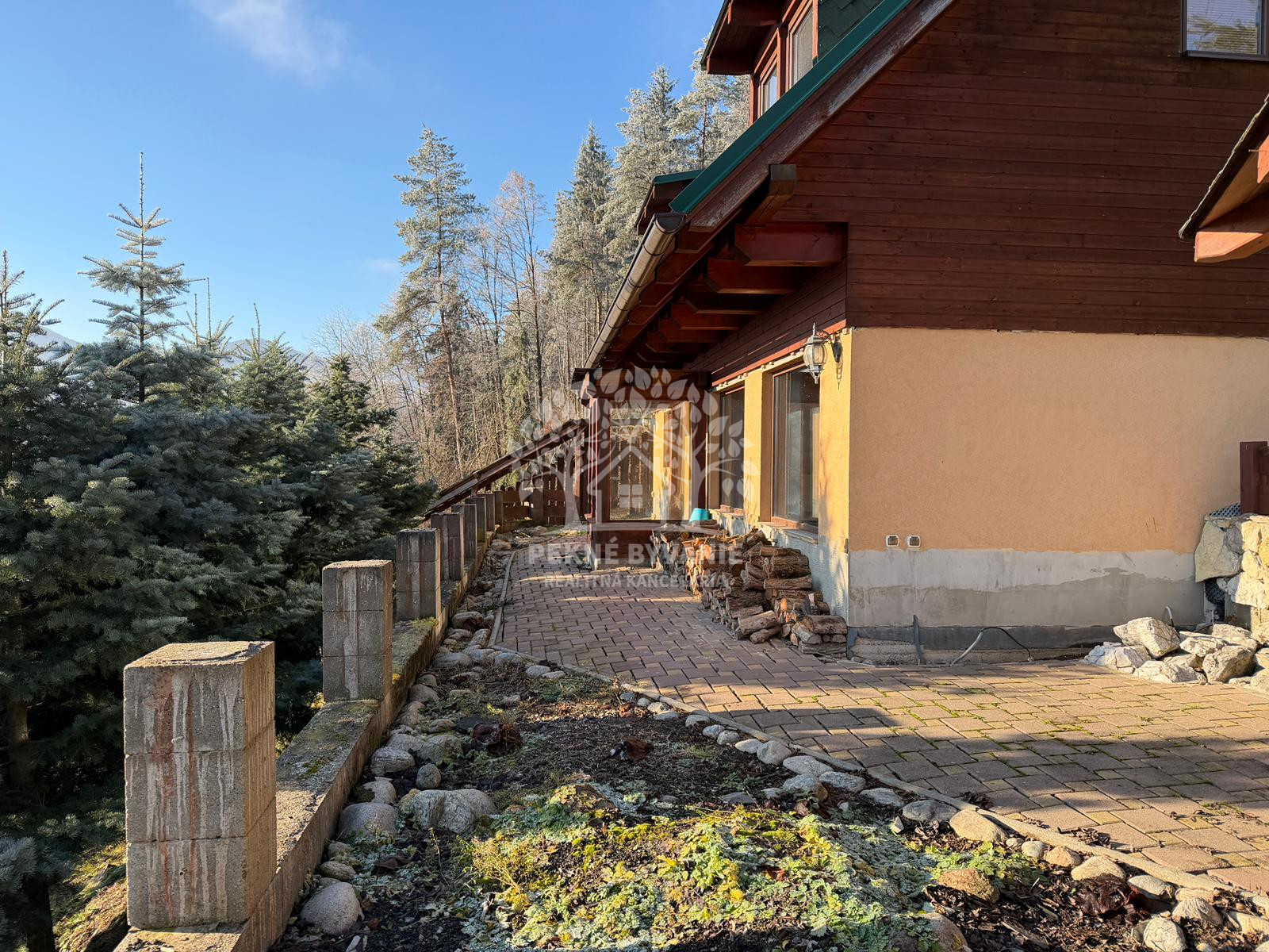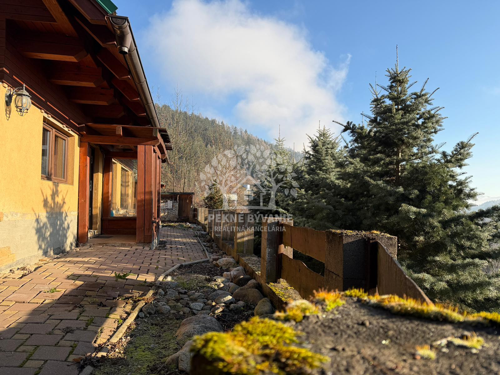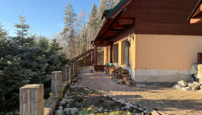 K domu vedie schodisko alebo lesná cesta. Projekt novej cesty priamo k domu je v cene domu. Dom je vhodný na bývanie alebo prenájom.