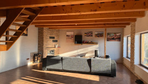 Pozostáva z obývacej izby s kuchyňou ( predpríprava na kuchynskú linku) a kúpeľňou s toaletou. Po schodoch sa vchádza na poschodie kde sú dve izby.