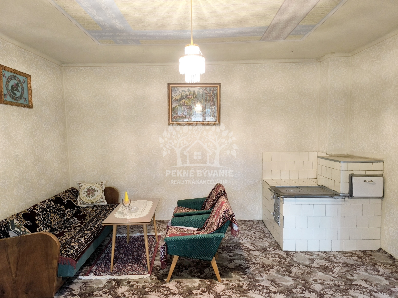 Poschodie: veranda, vstupná chodba, špajza - využiteľná ako kúpeľňa s toaletou, dve priestranné izby z čoho v jednej je murovaný šporák a v druhej kachle - petrík.