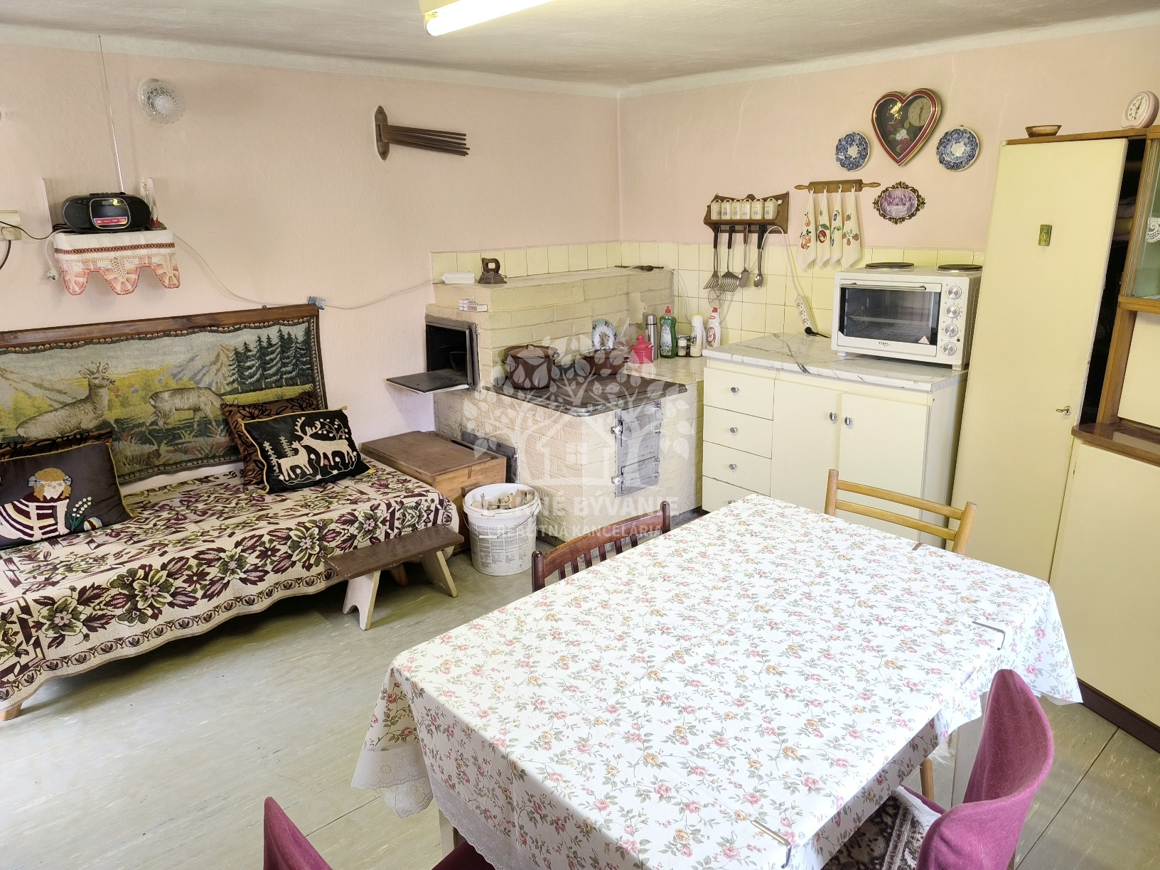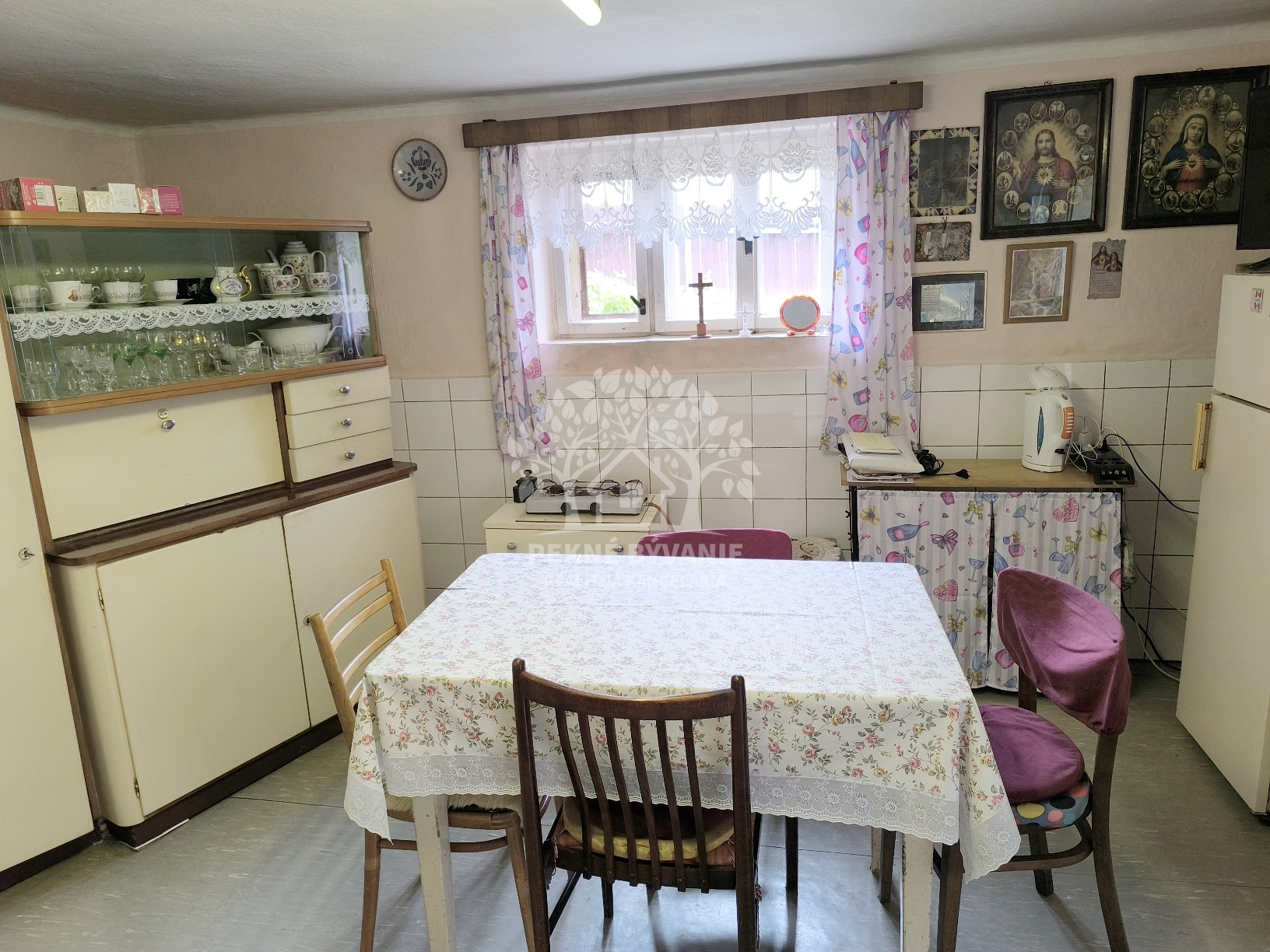 V spodnej časti domu sa nachádza kuchyňa so zachovalým plne funkčným murovaným šporákom a ďalšia miestnosť - využívaná ako pivnica.