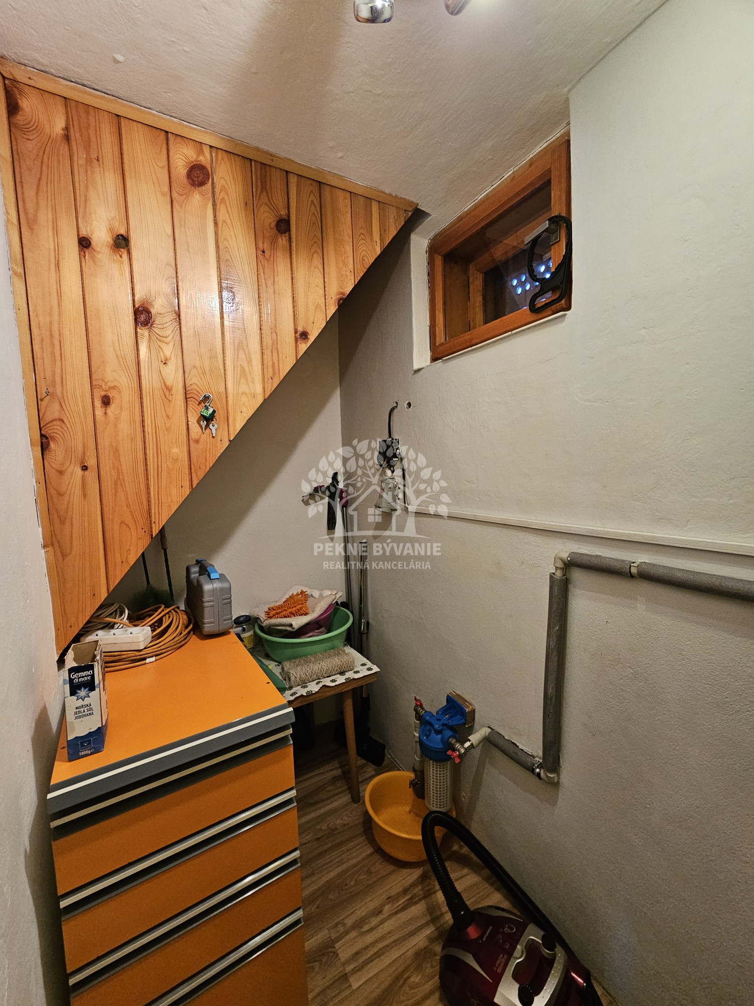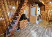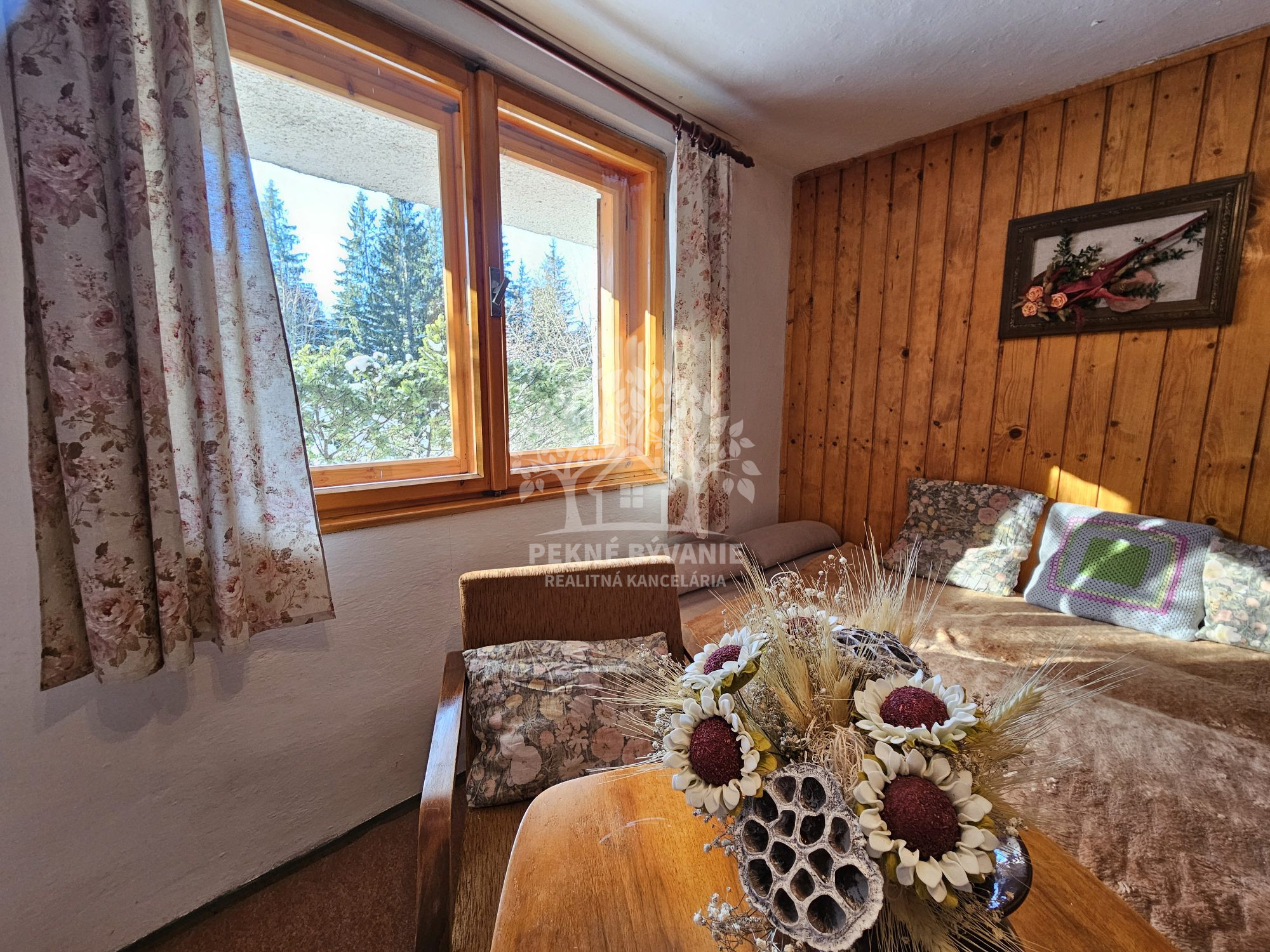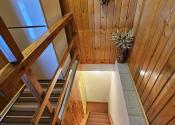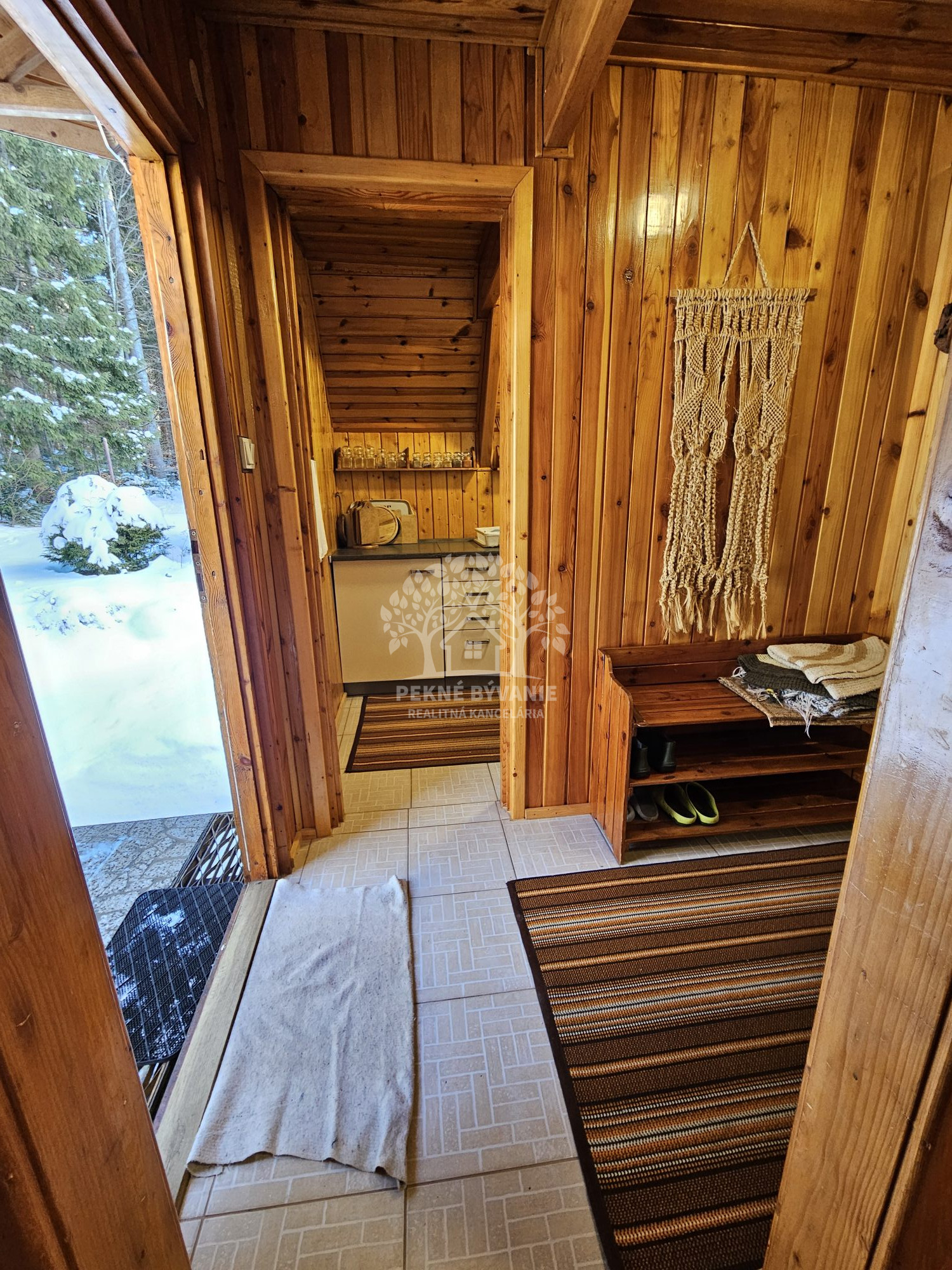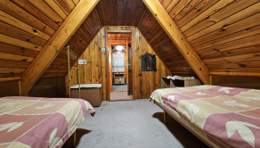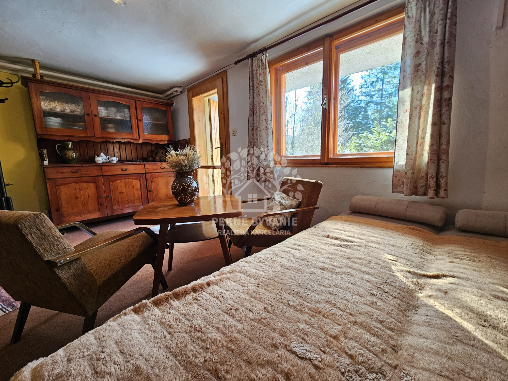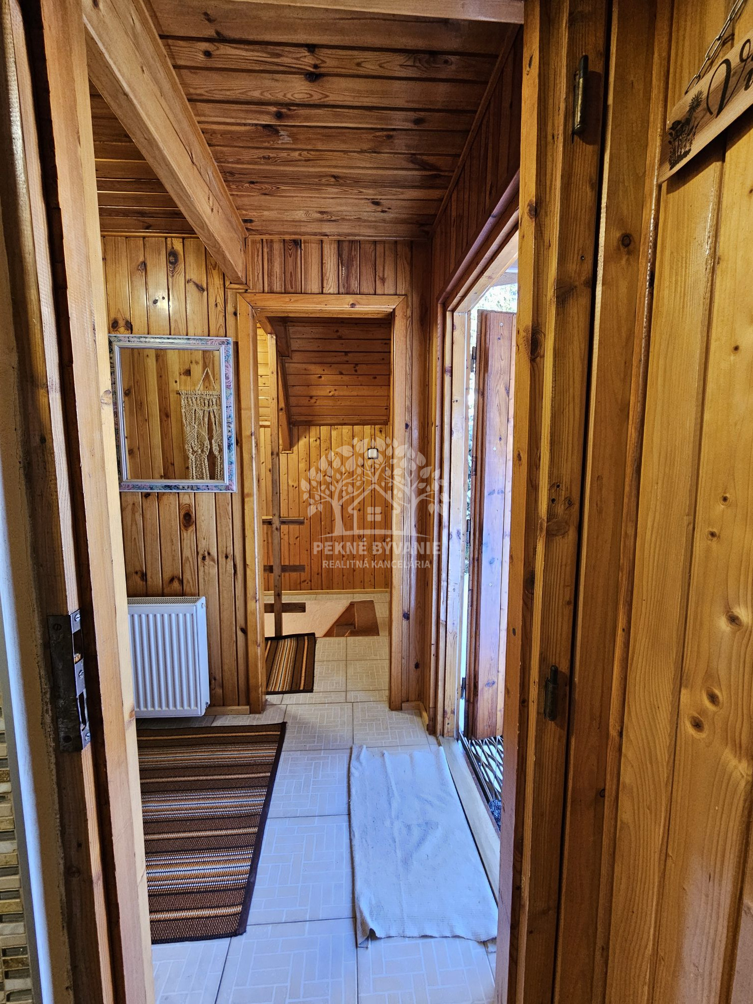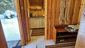 Poschodie- oddychová miestnosť s krbom, kuchyňa a výstup drevenými schodmi do podkrovia, kde je nočná časť s dvoma samostatnými izbami.