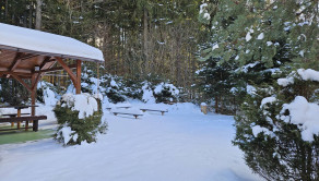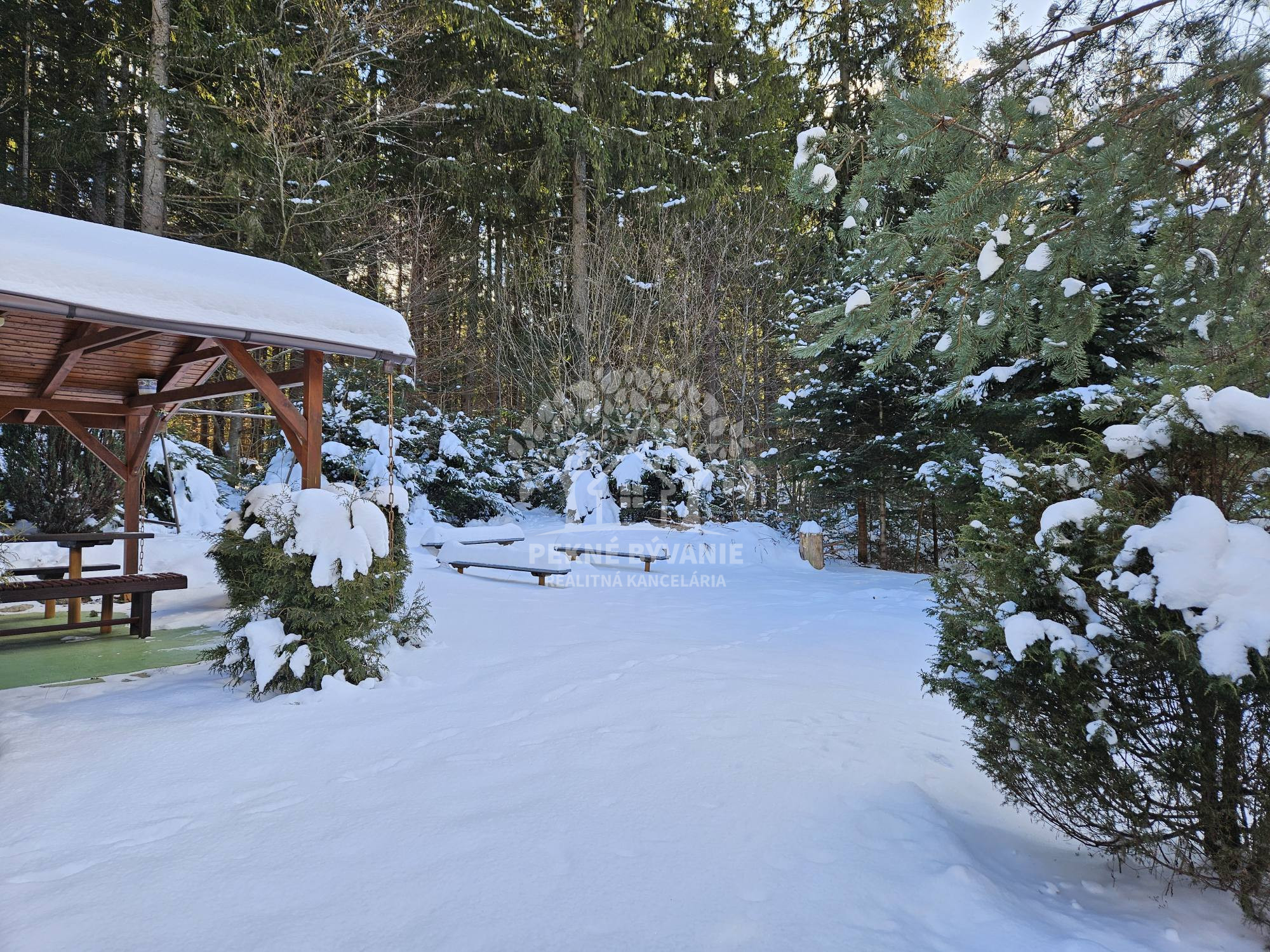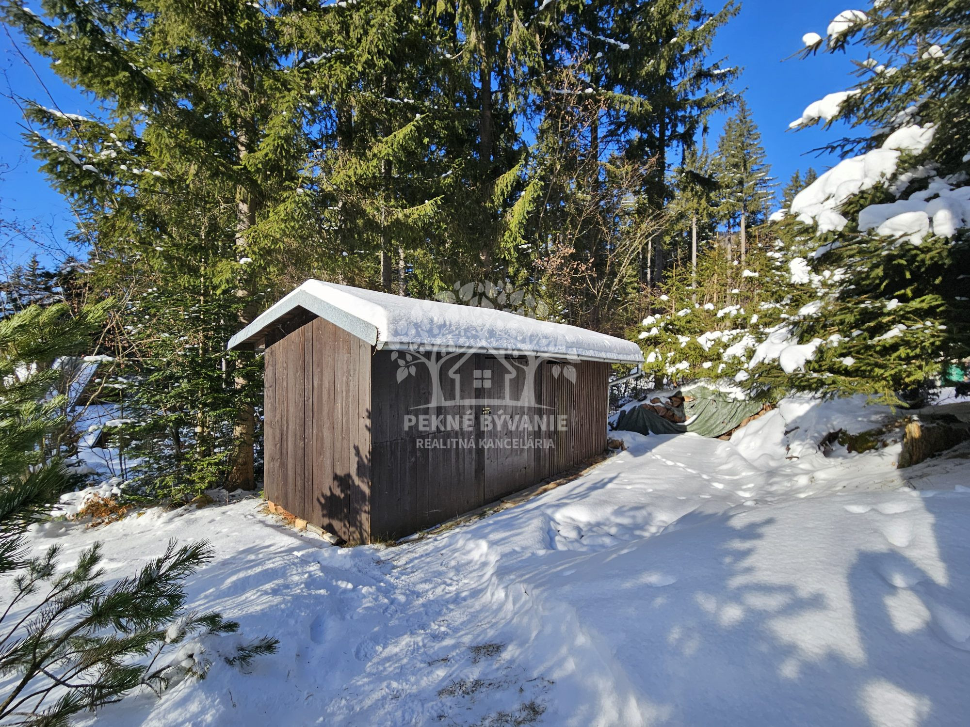 Pozemok má rozlohu 225m2 je slnečný, rovinatý. Vedľa chatky je altánok s posedením a vybudovaným ohniskom a drevárnička.