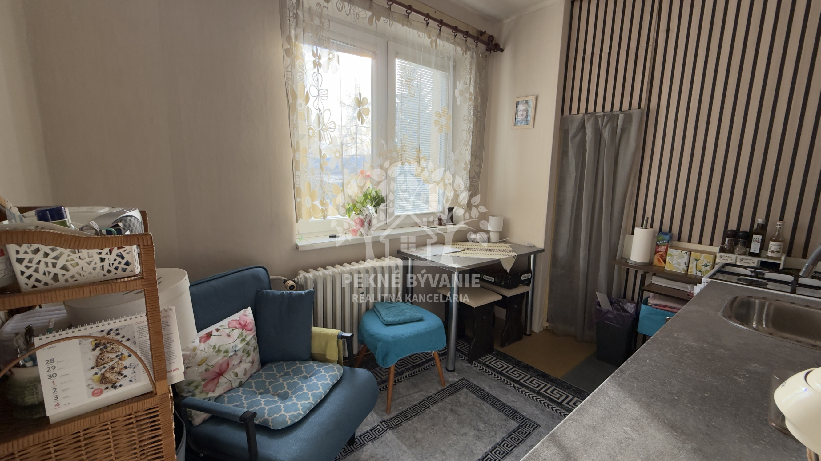 DISPOZÍCIA: vstupná chodba, kúpeľňa, samostatná toaleta, kuchyňa s novou kuchynskou linkou, obývacia izba s balkónom, spálňa.