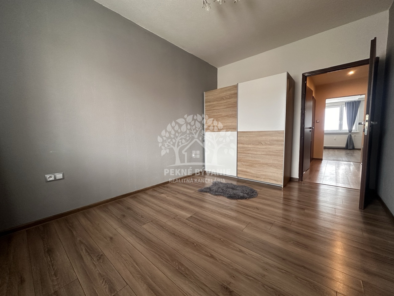 Spálňa je so plávajúcimi podlahami, plastovými oknami, kúrením, el. rozvodmi, skriňou,