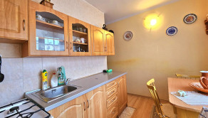 Dispozičné riešenie: vstupná chodba, z ktorej je vstup do dvoch priechodných izieb a jednej nepriechodnej (obývacia izba), do kuchyne, ďalej kúpelňa a samostatné WC.