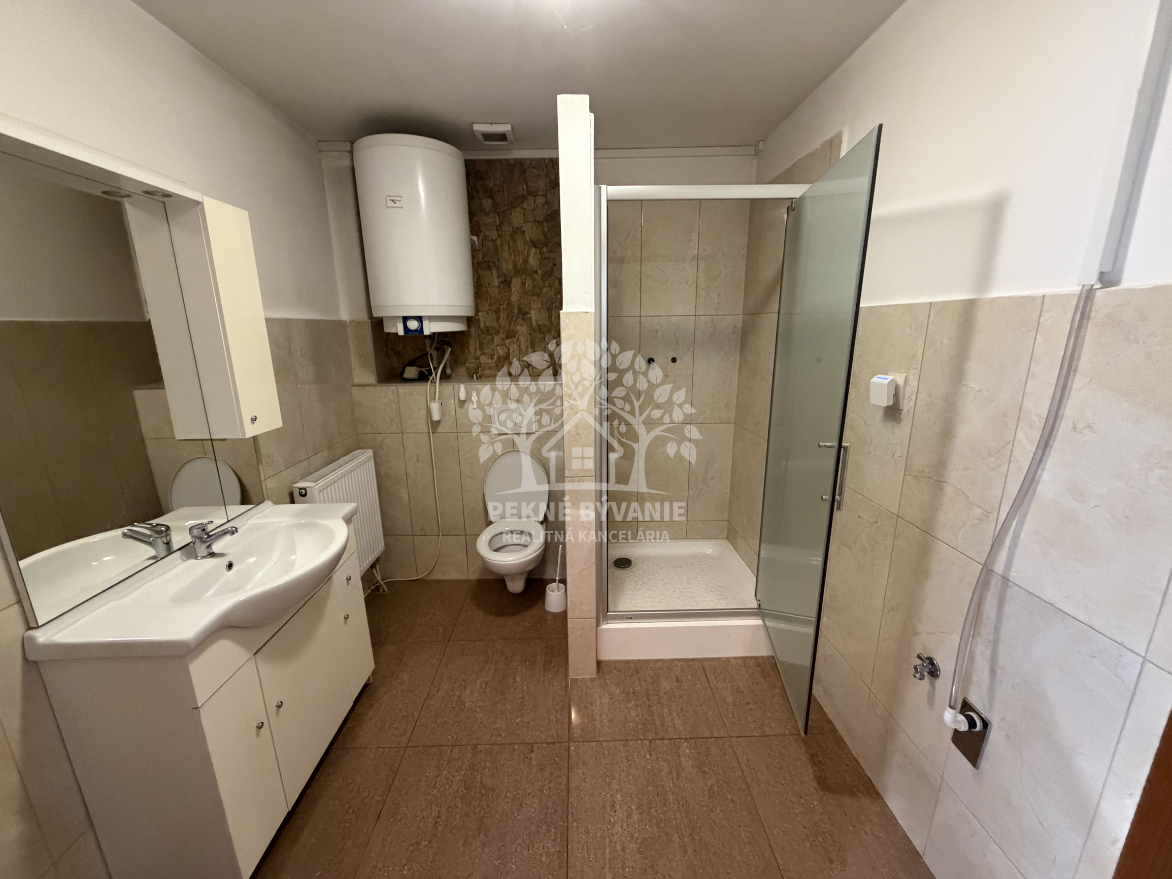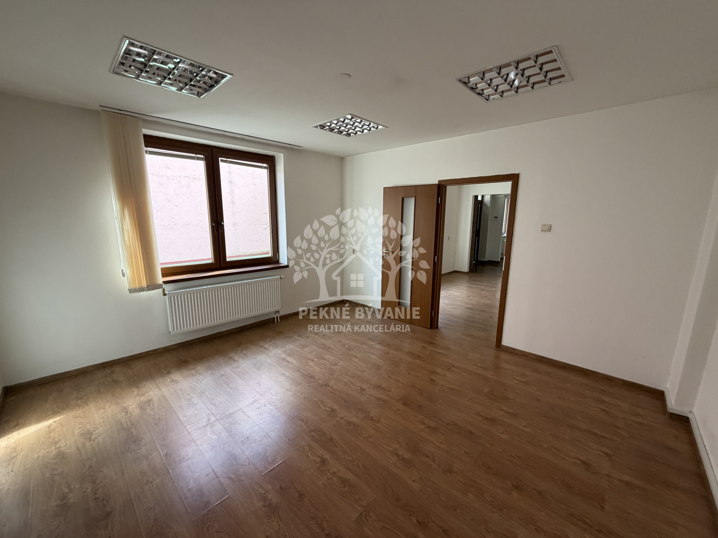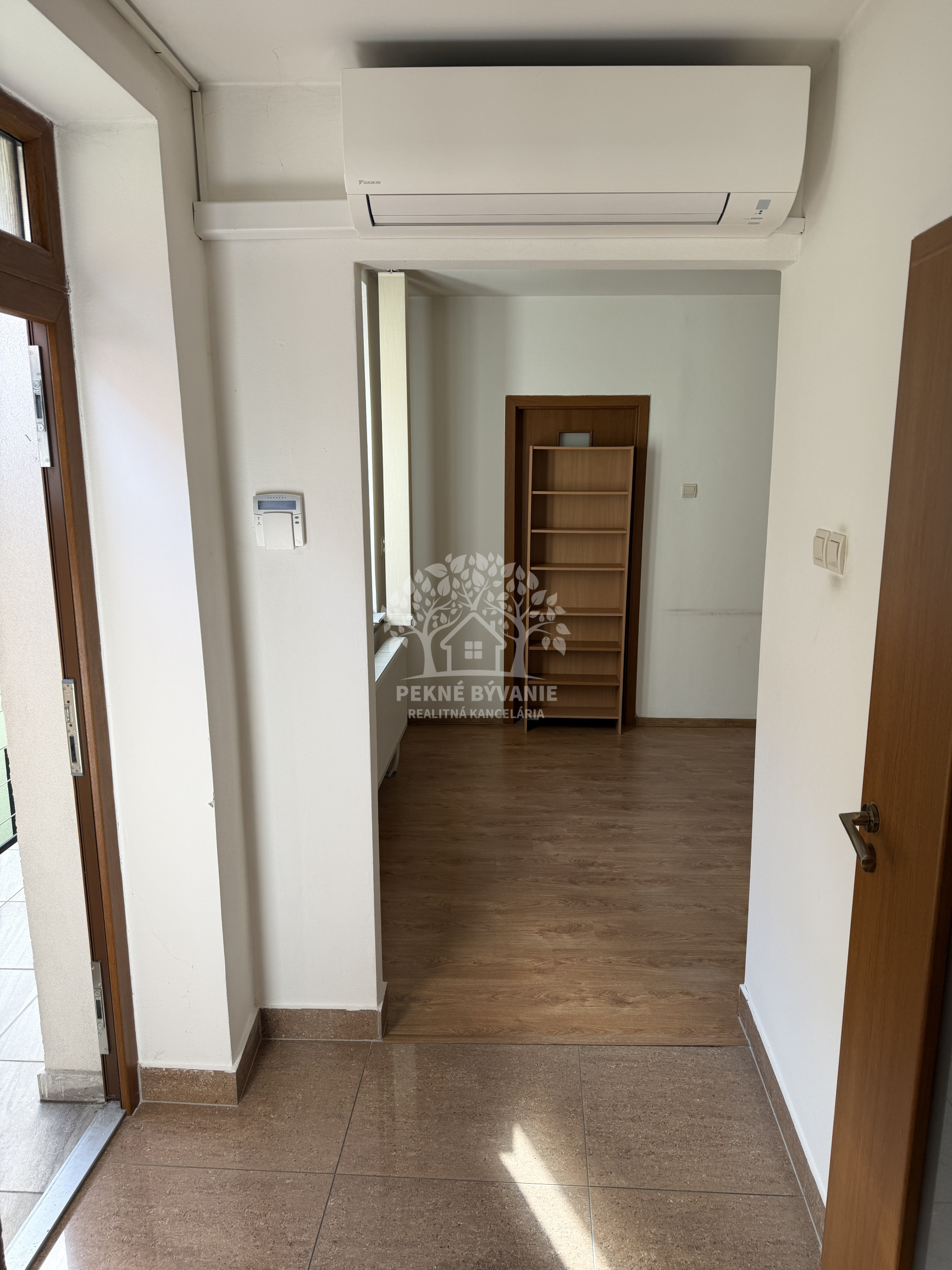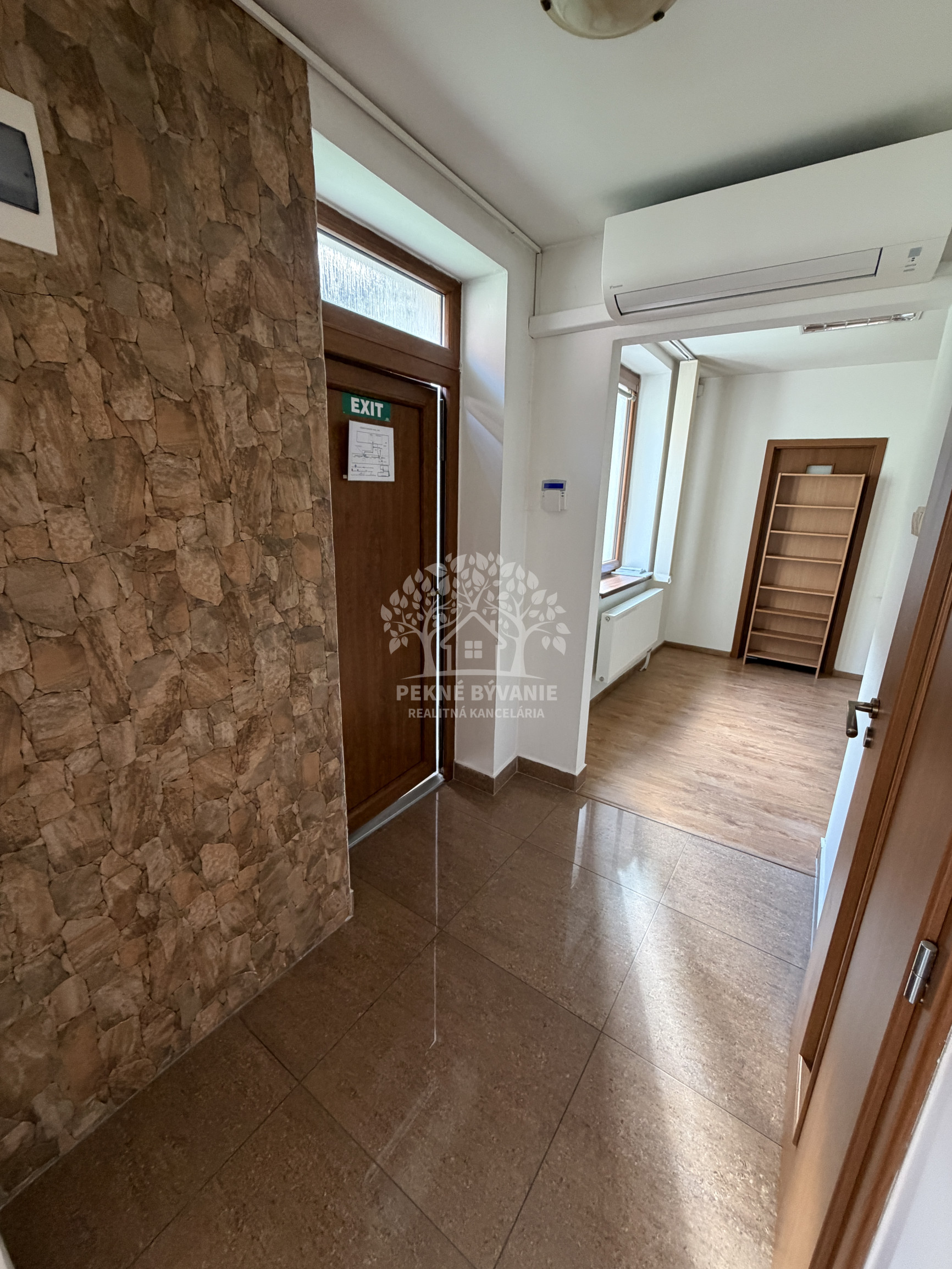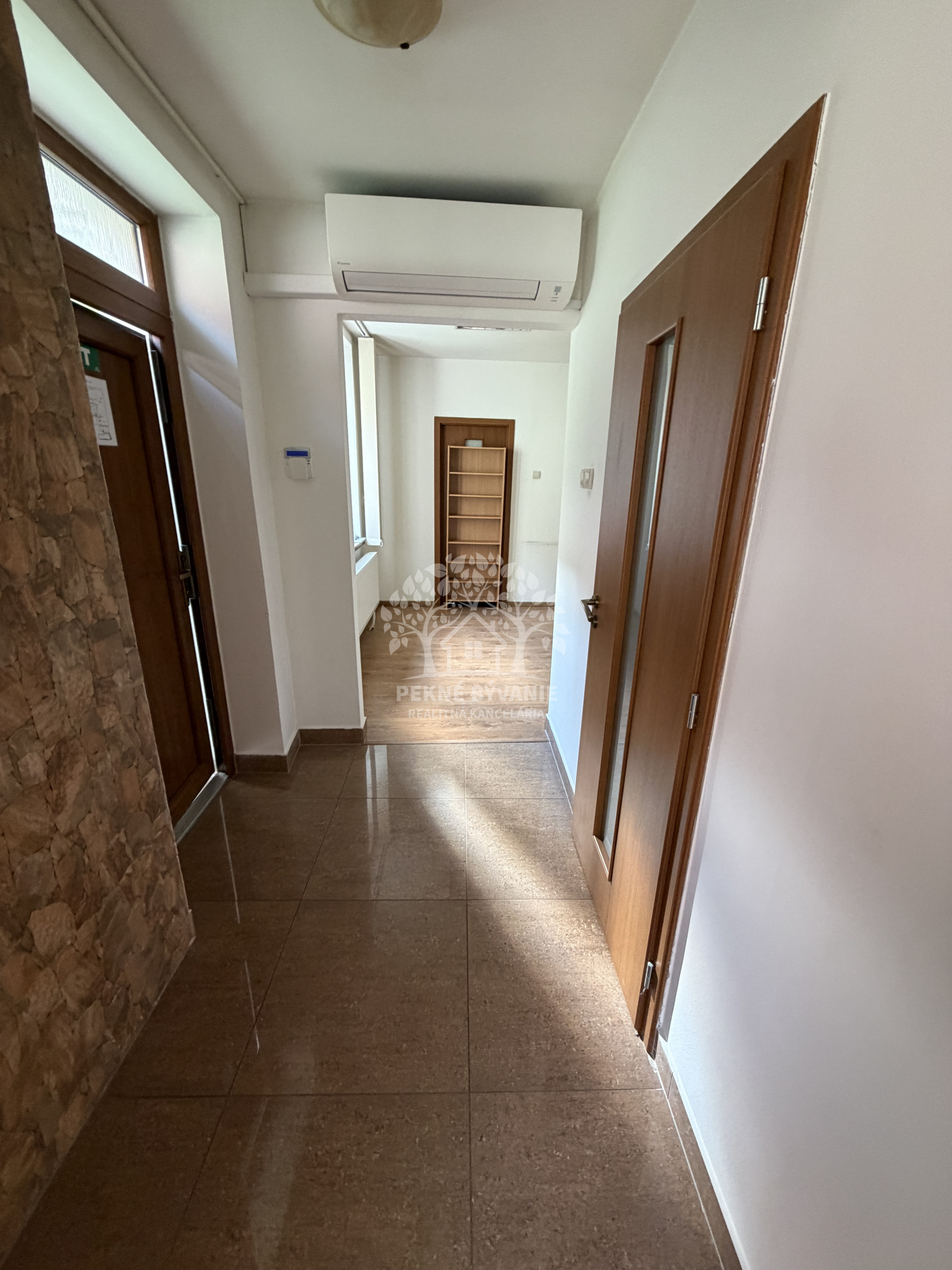 Priestory majú 60 m2, pozostávajú zo vstupnej chodby, 3 miestností a veľkej kúpelne. Ako veľký bonus tejto ponuky je k dispozícii klimatizácia, vlastné parkovacie miesto ako i zabezpečovací systém s kamerami a alarmom.