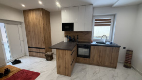 Dom je čerstvo postavený,robia sa na ňom posledné úpravy interiéru,kde budete mať k dispozícii komplet zariadenie nábytkom a zariadenú a vybavenú kuchyňu s elektrospotrebičmi./viď foto/a TV. Chladnička a práčka nieje k dispozícii.