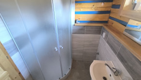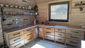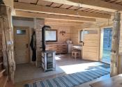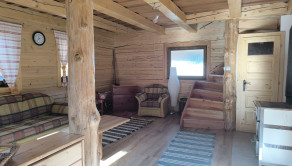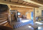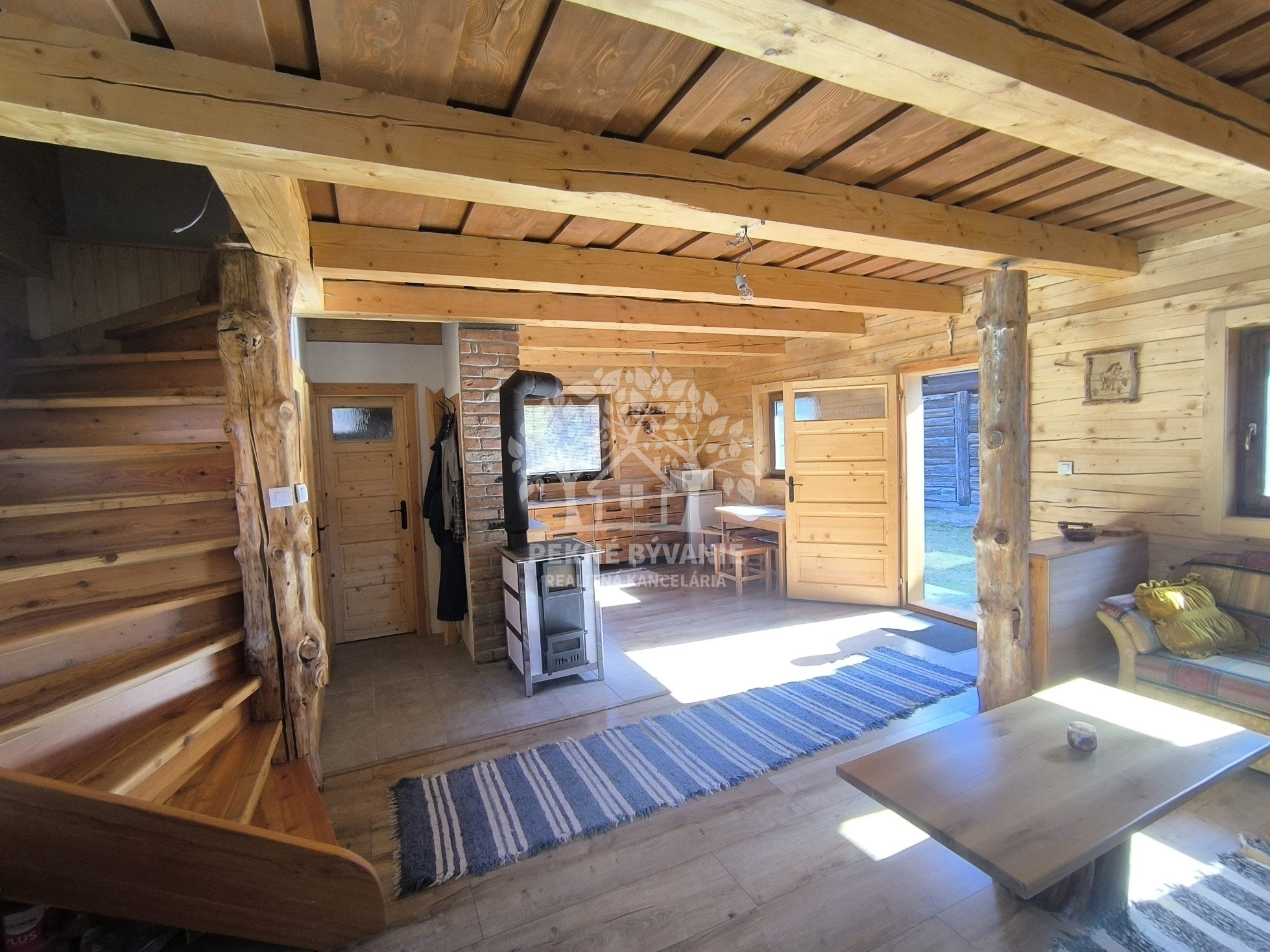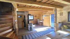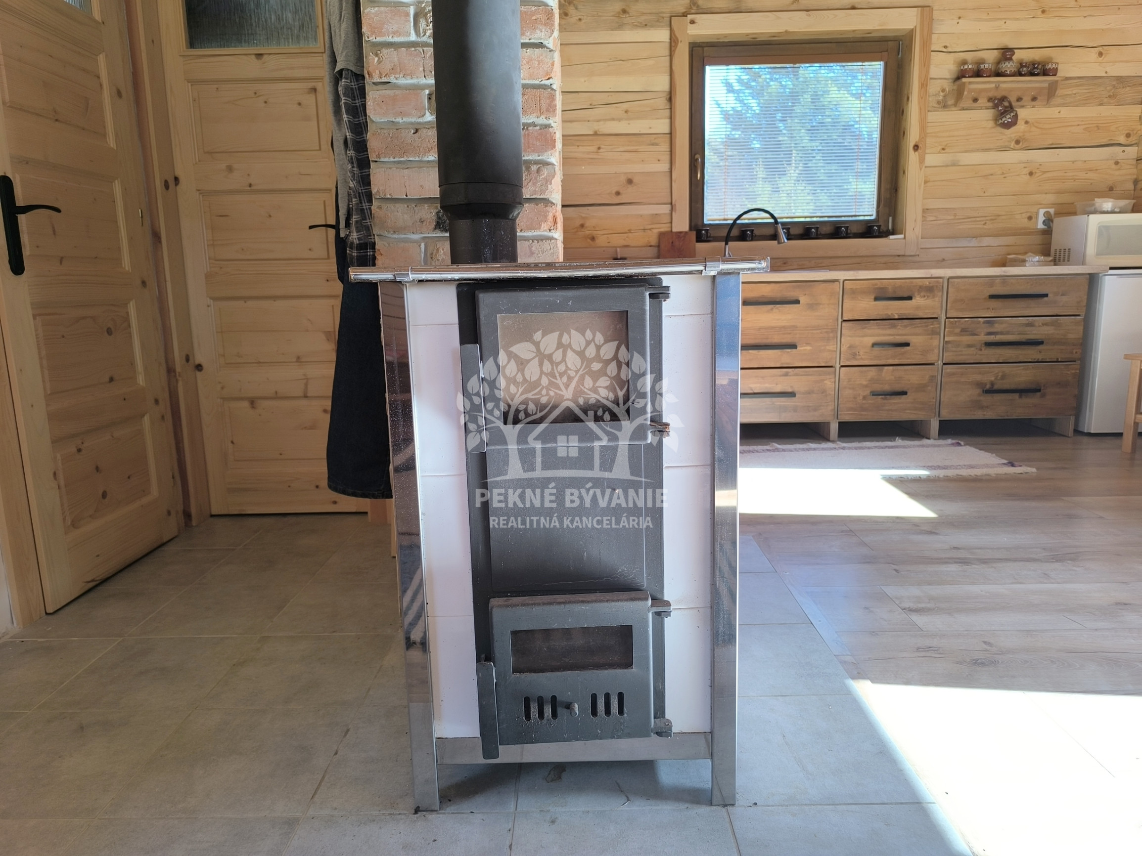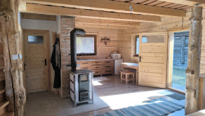 Drevenica je o rozmere 6x8 m a úžitkovou plochou 85 m2 s podlahovým elektrickým kúrením a ako bonus je na prízemí šporák na letné a zimné používanie, ktorý tiež vykúri celý priestor a aj na varenie. V kuchyni je predpríprava na indukčný šporák.