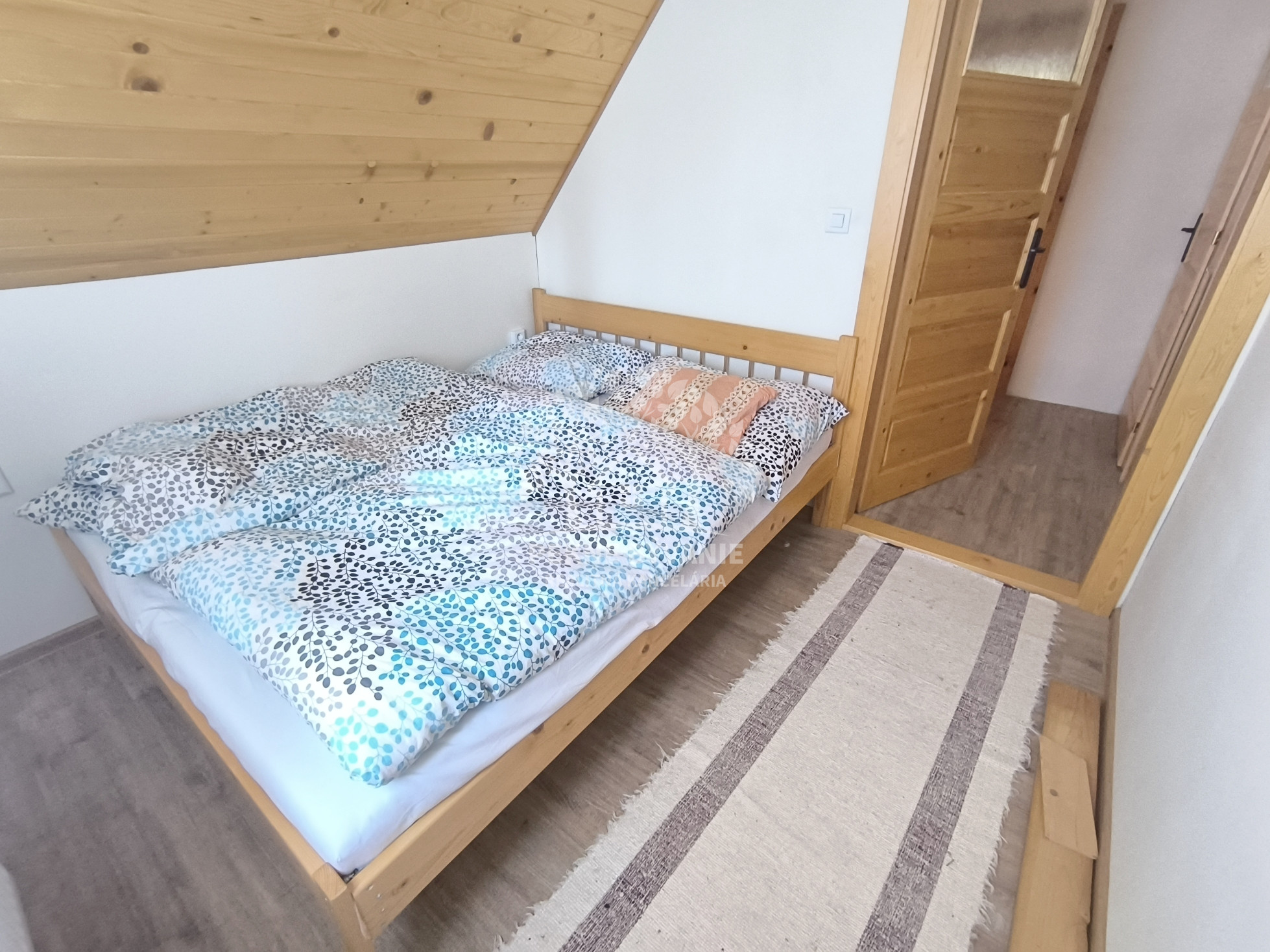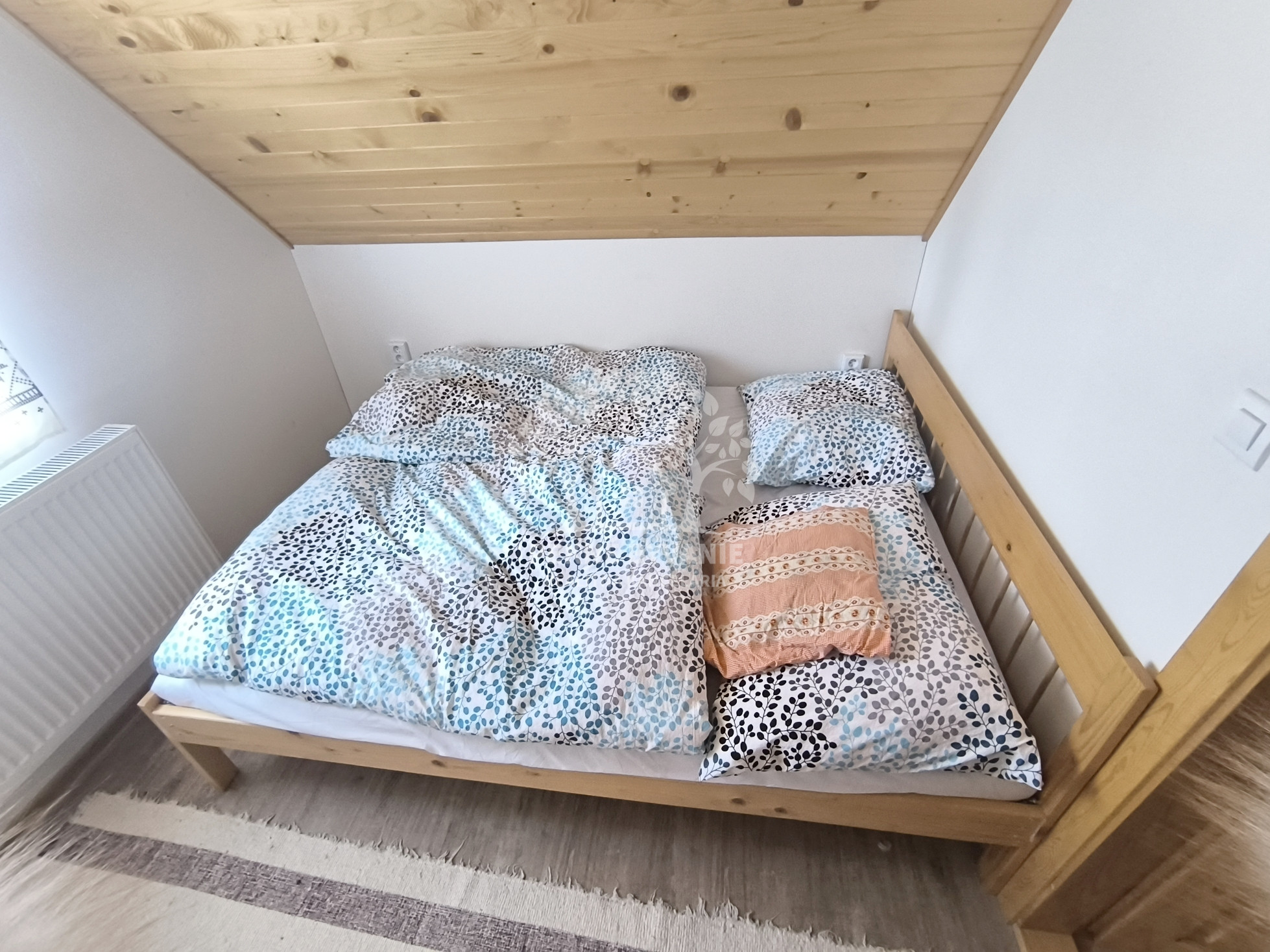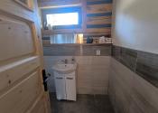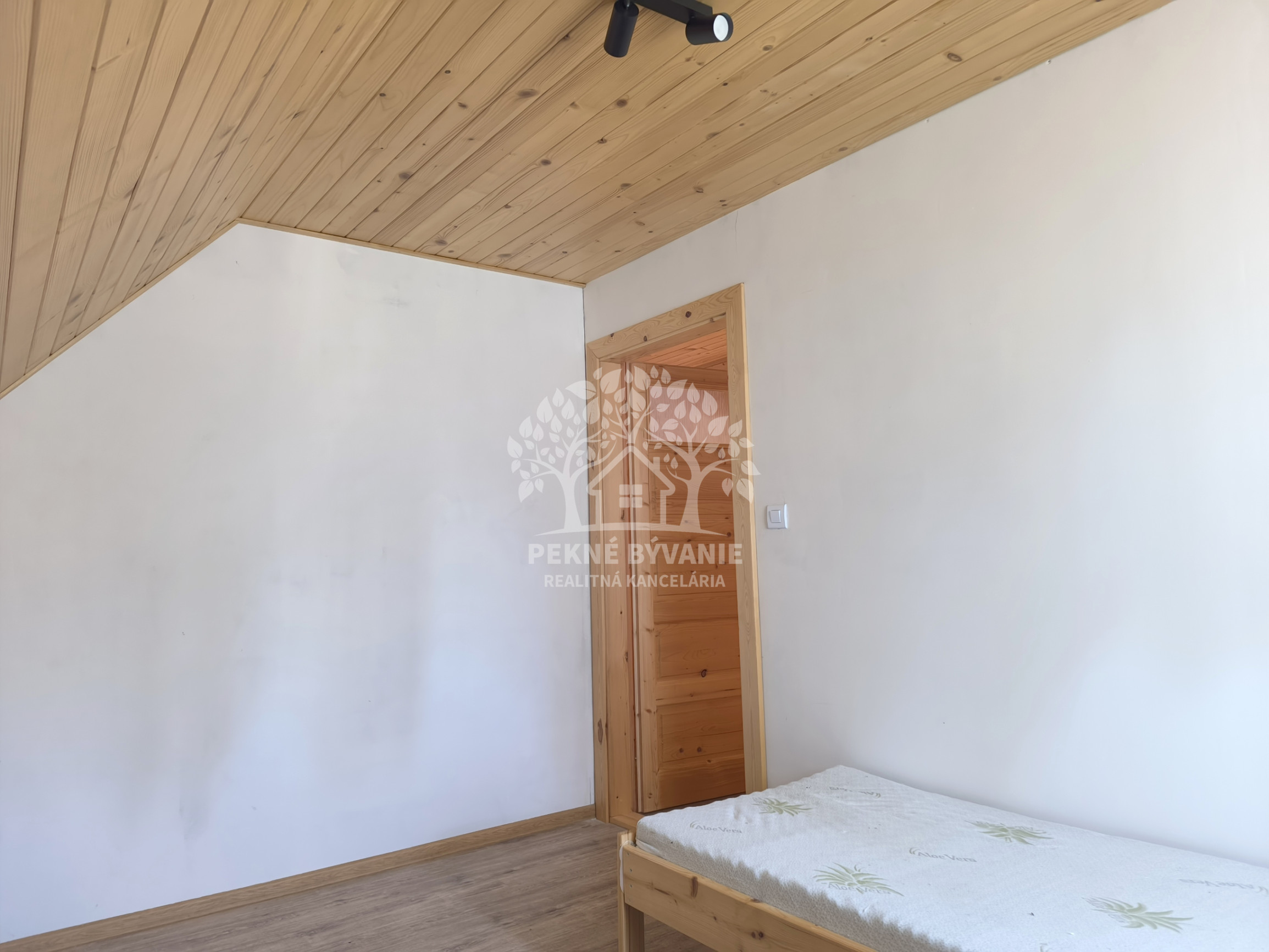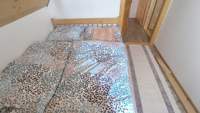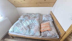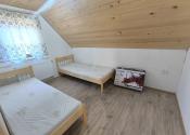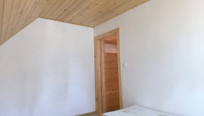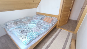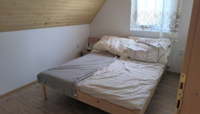 Dispozícia: vstup do priestrannej kuchyne s obývačkou - spoločenskou miestnosťou, kúpeľňa so sprchovým kútom a osobitne toaleta, technická miestnosť, na poschodí sú štyri spálne.