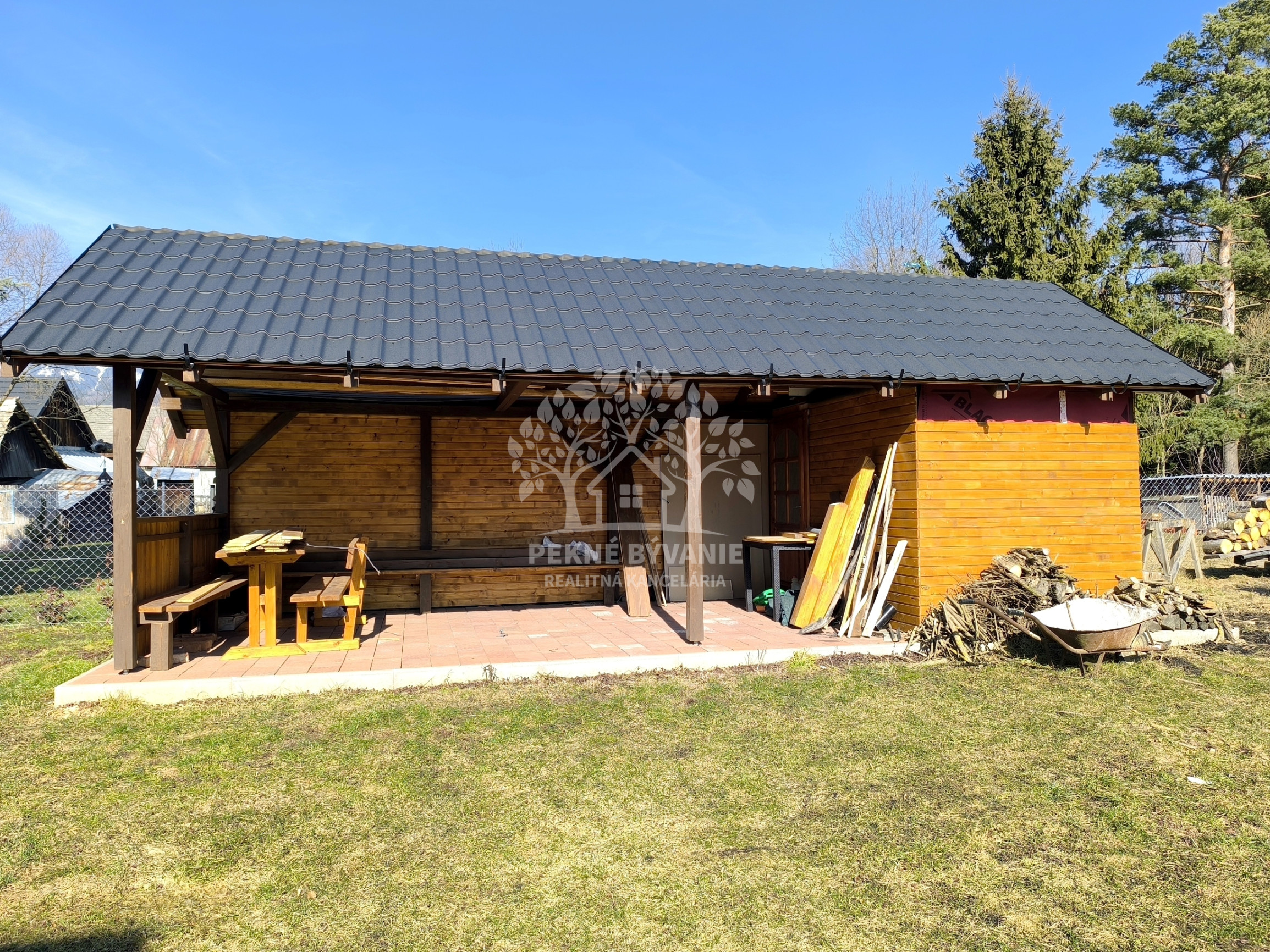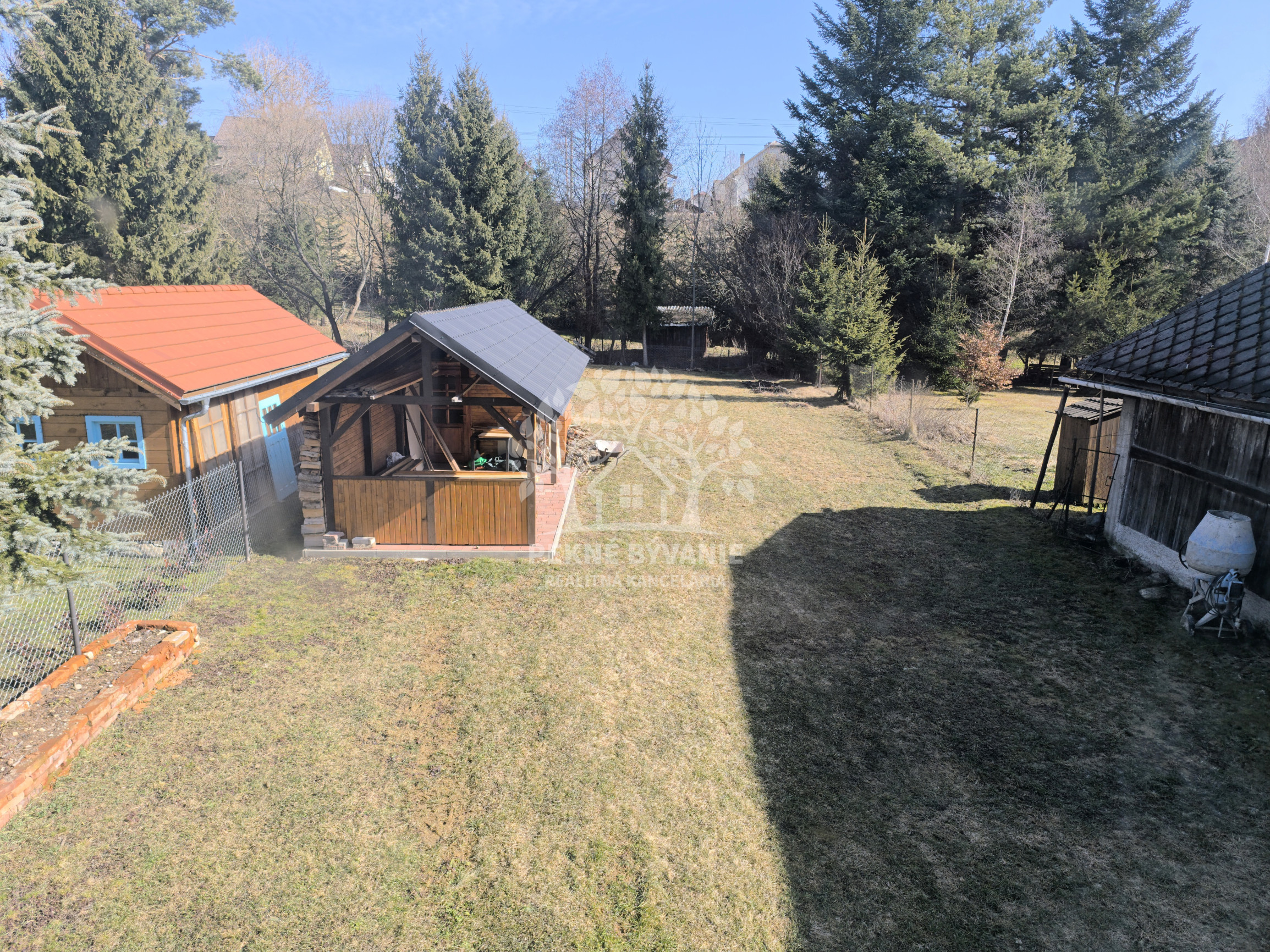 Na pozemku sa nachádza altánok, dreváreň a spevnená plocha, kde je možné zaparkovať až 5 áut.