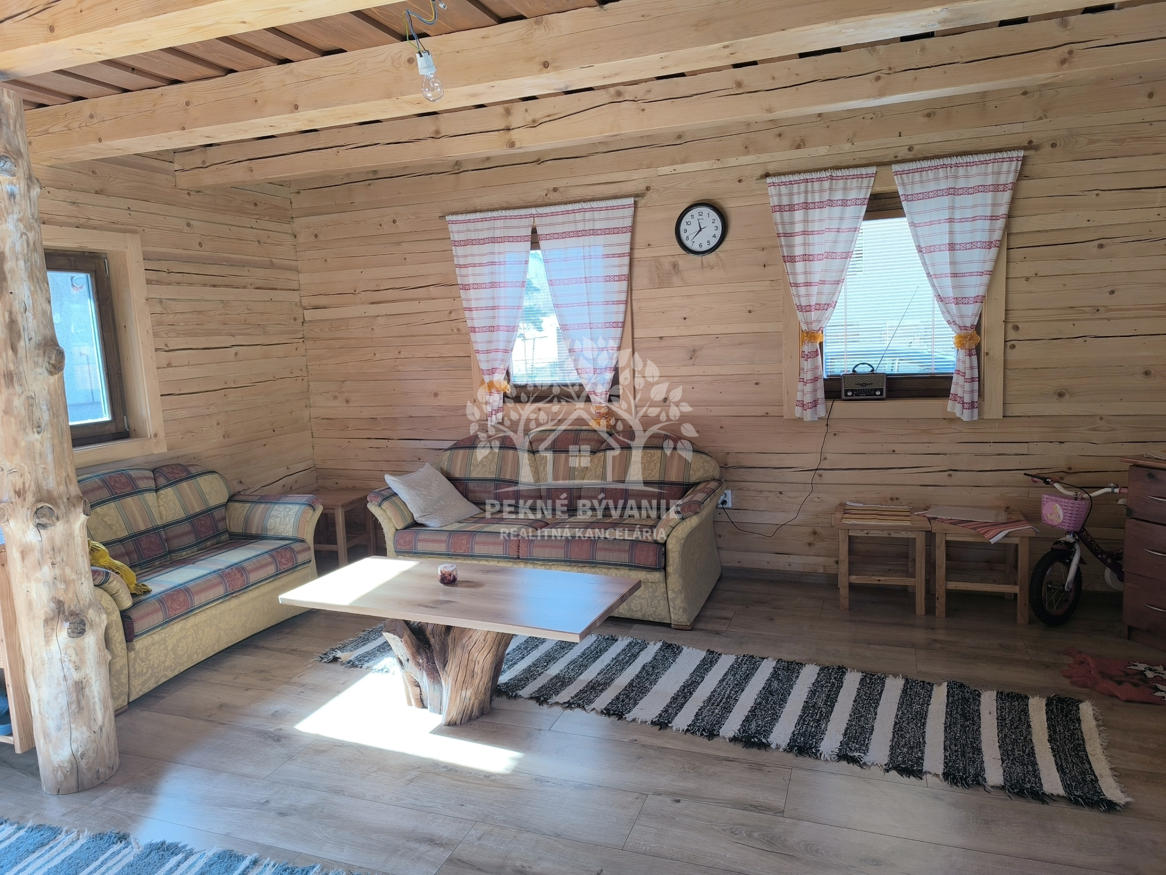 IBA U NÁS!! Pekné Bývanie realitná kancelária v zastúpení licencovaná relitná maklérka Dáša Frgelcová, t.č. 0907/666 687 Vám exkluzívne ponúka na predaj novučičkú Rekreačnú chatu - drevenicu na slnečnom rovinatom pozemku o rozlohe 854 m2 s potôčikom na konci pozemku v tichej slepej ulici s pár domami v obci Závadka nad Hronom na Horehroní.