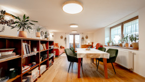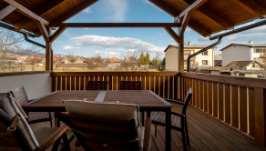 Interiér dýcha priestorom a vkusom. Dominantou je otvorený denný priestor (kuchyňa s ostrovčekom, jedáleň a obývačka), ktorý plynule prechádza na terasu s elektrickým grilom.