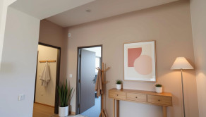 Byt pozostáva zo vstupnej chodby, samostatné WC, kuchyne, dvoch priestranných izieb, kúpeľne s vaňou a sprchovým kútom.