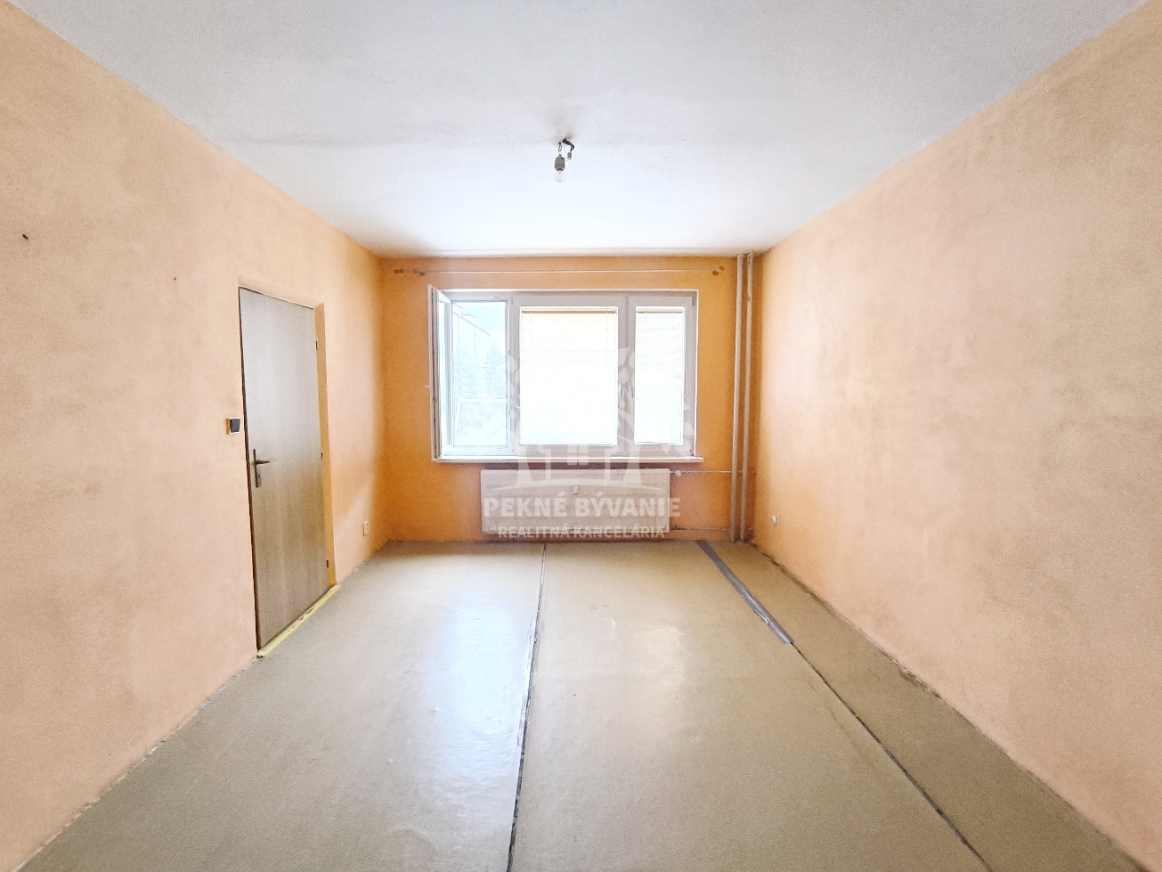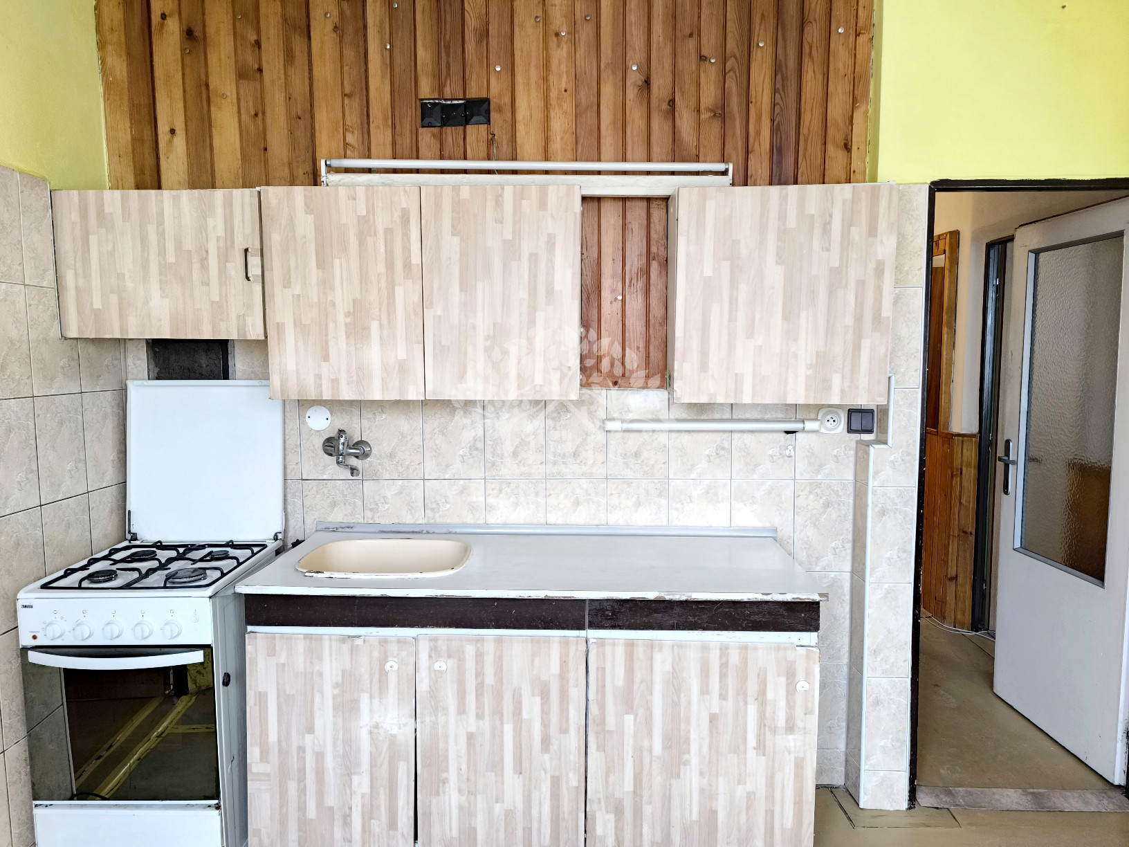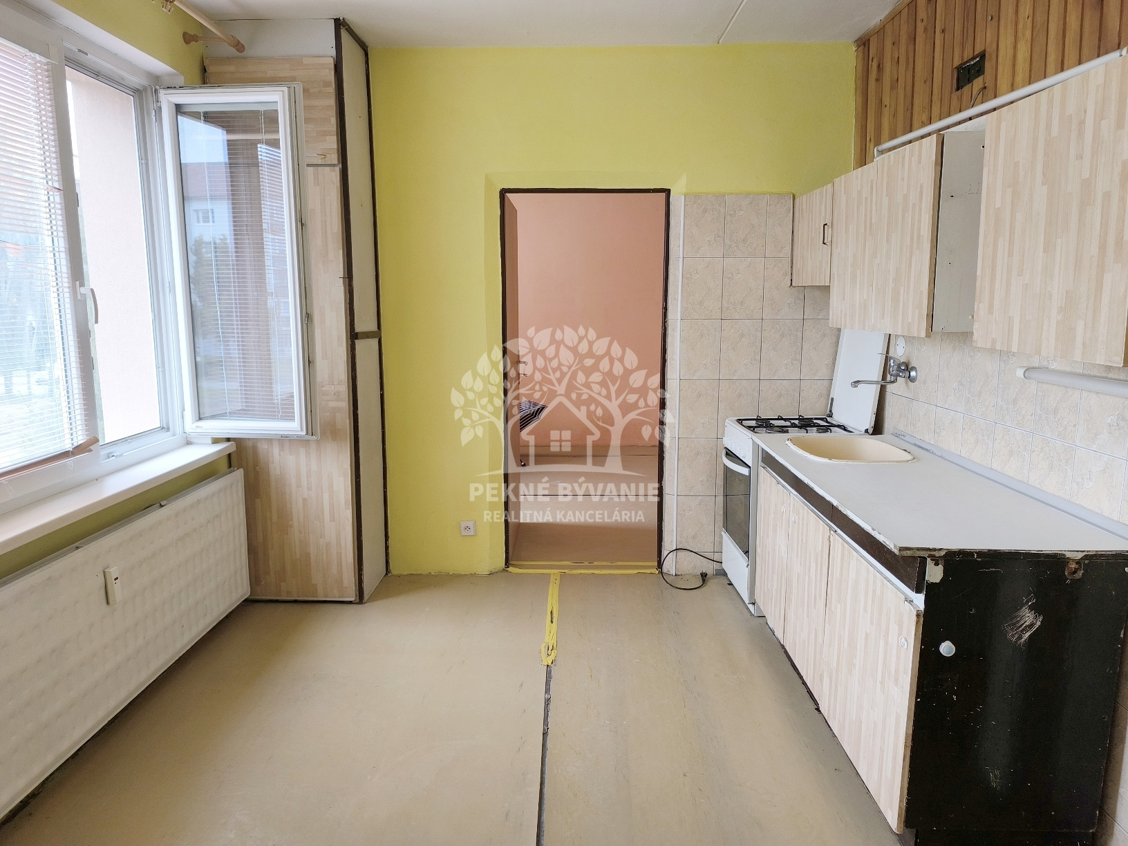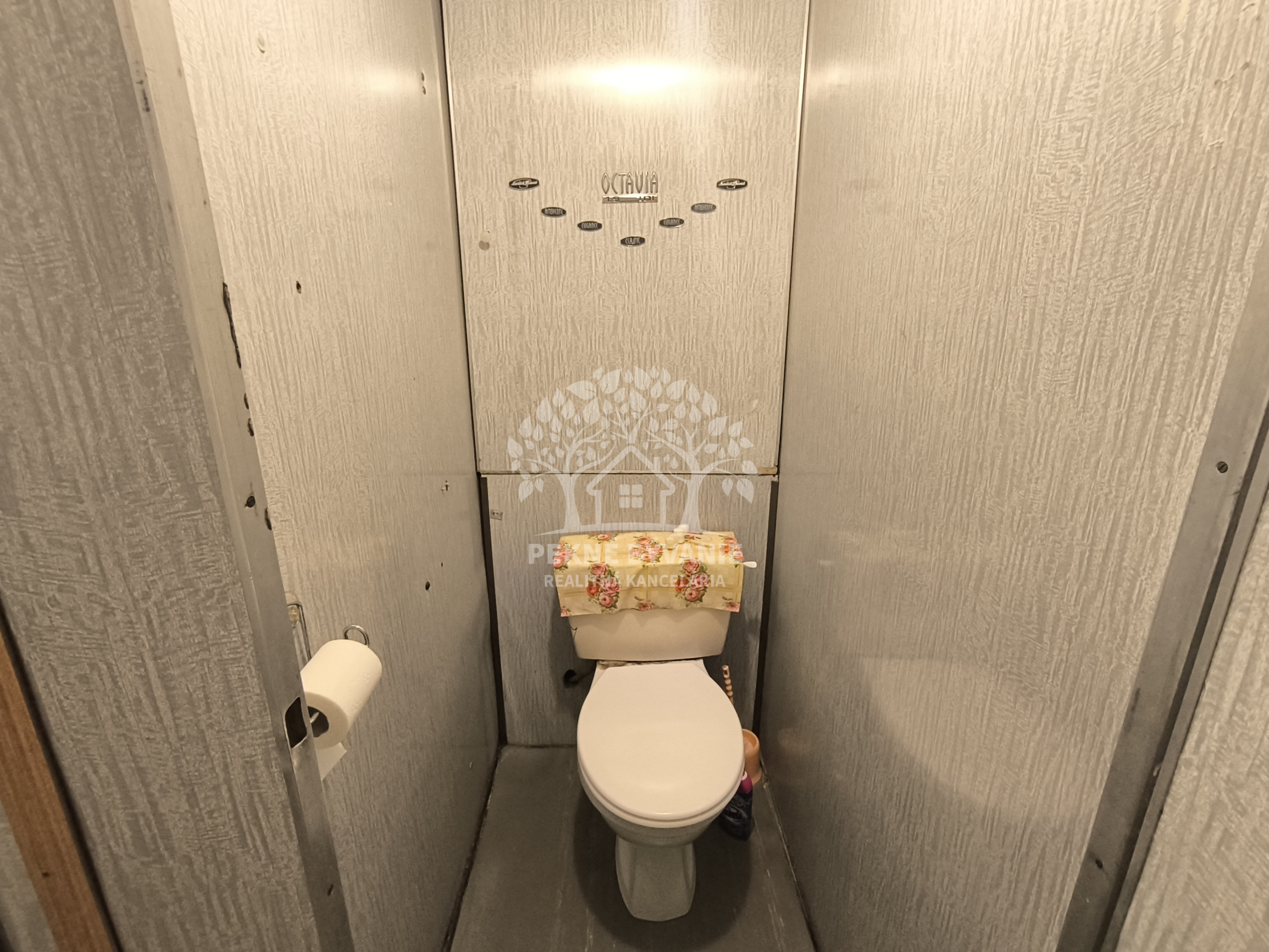 Dispozícia: vstupná chodba, kúpeľňa s vaňou a osobitne toaleta, kuchyňa, obývačka /možné rozdeliť na dve izby,/ spálňa.