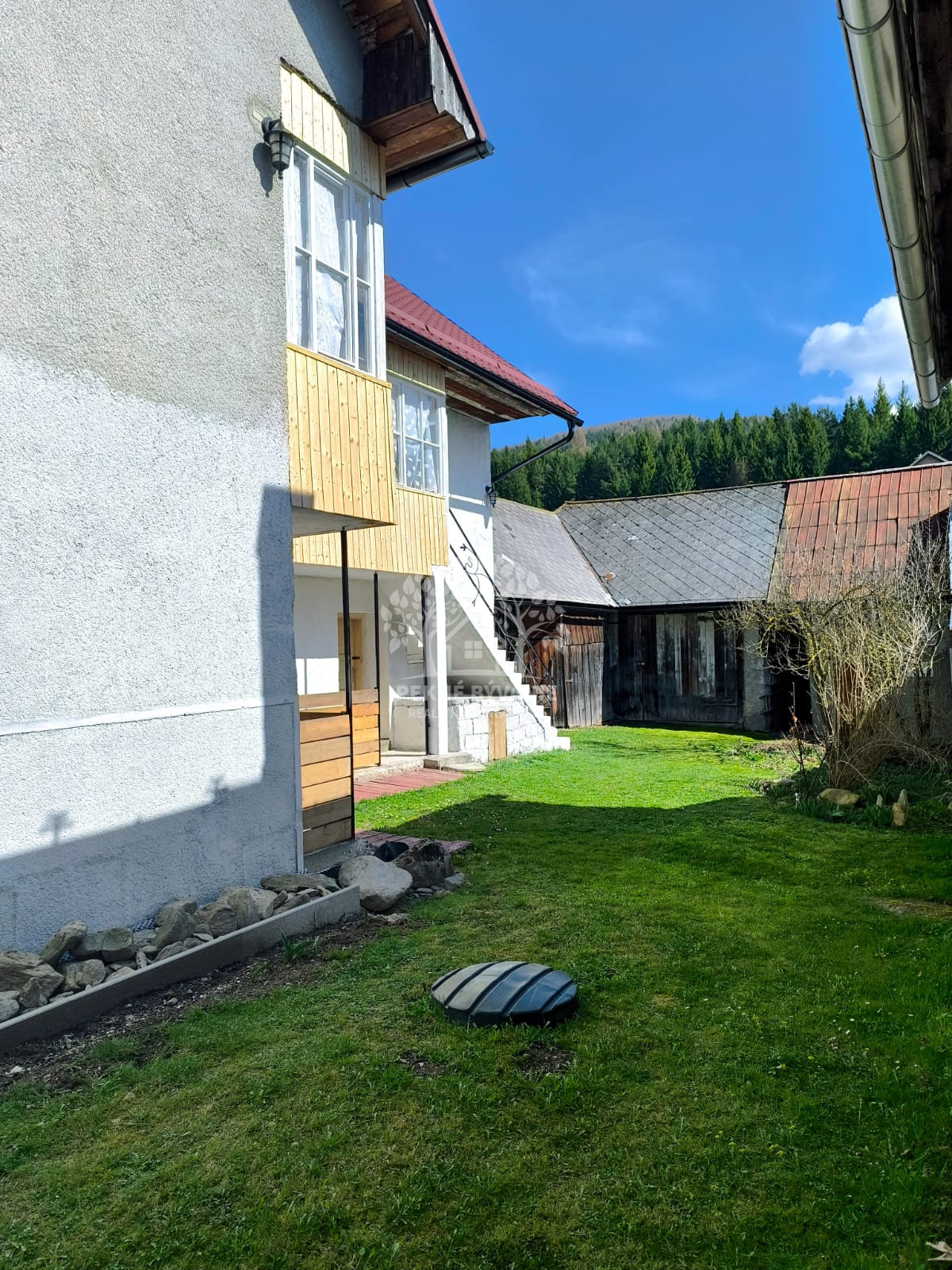 Na rovinatom ľahko udržiavanom pozemku sa nachádza hospodárska budova v pôvodnom stave a prístup k potôčiku. Bezproblémové parkovanie pred nehnuteľnosťou a vo dvore.