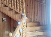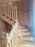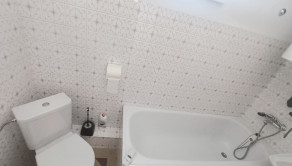 Poschodie: vstupná chodba, kuchyňa, špajza, kúpeľňa s vaňou, sprchovým kútom a toaletou, obývačka s balkónom a spálňa.